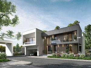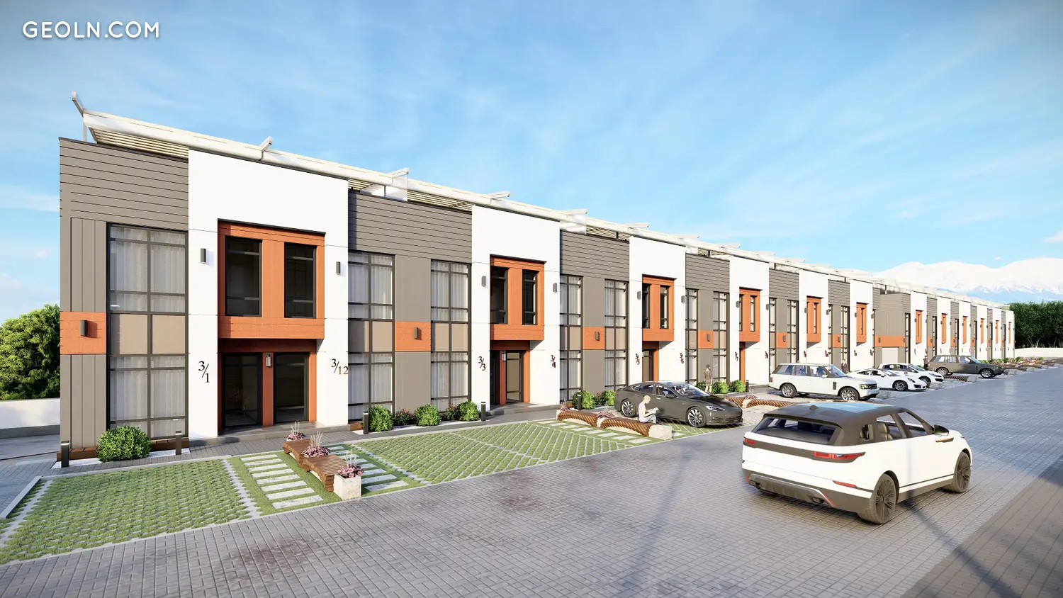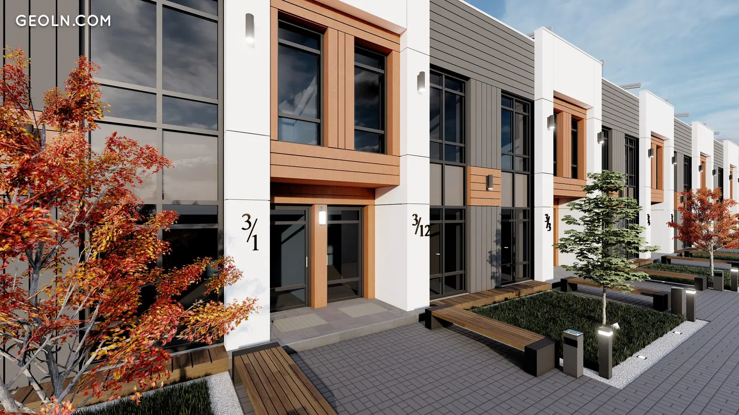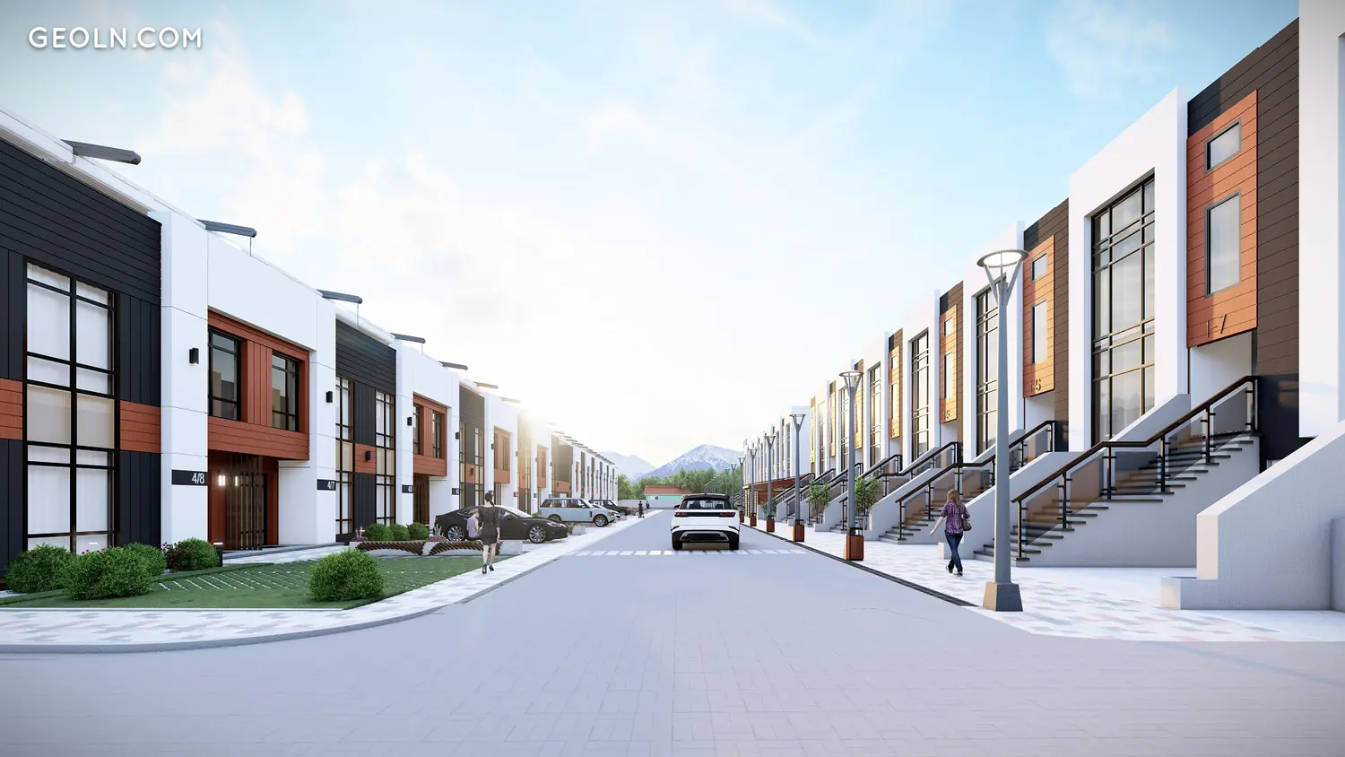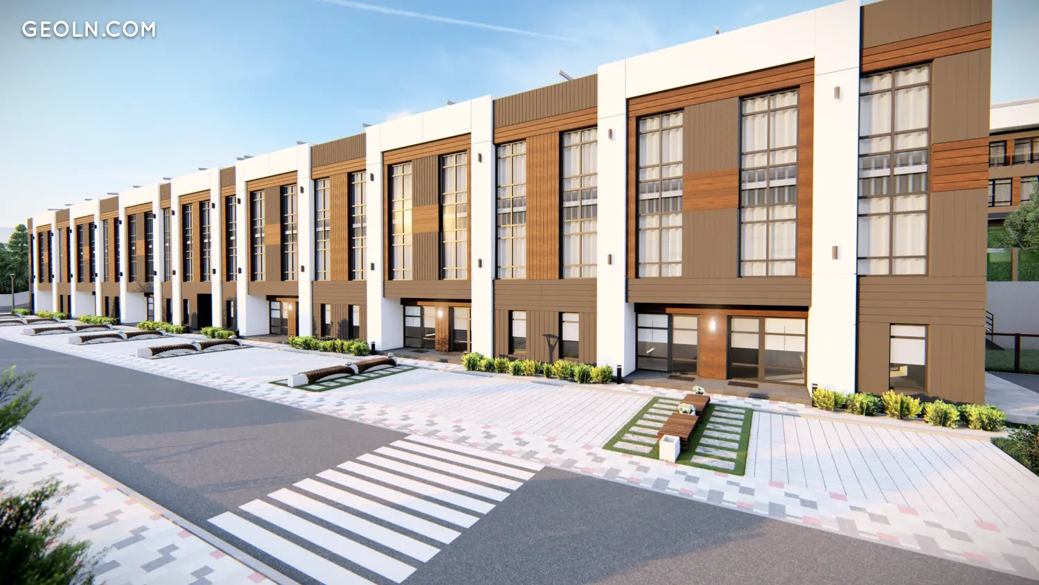 Three-level business class townhouses are designed in a modern architectural style that emphasizes the elite status of future residents. Each house comes with an individual plot of land, a roof terrace and a personal garage.