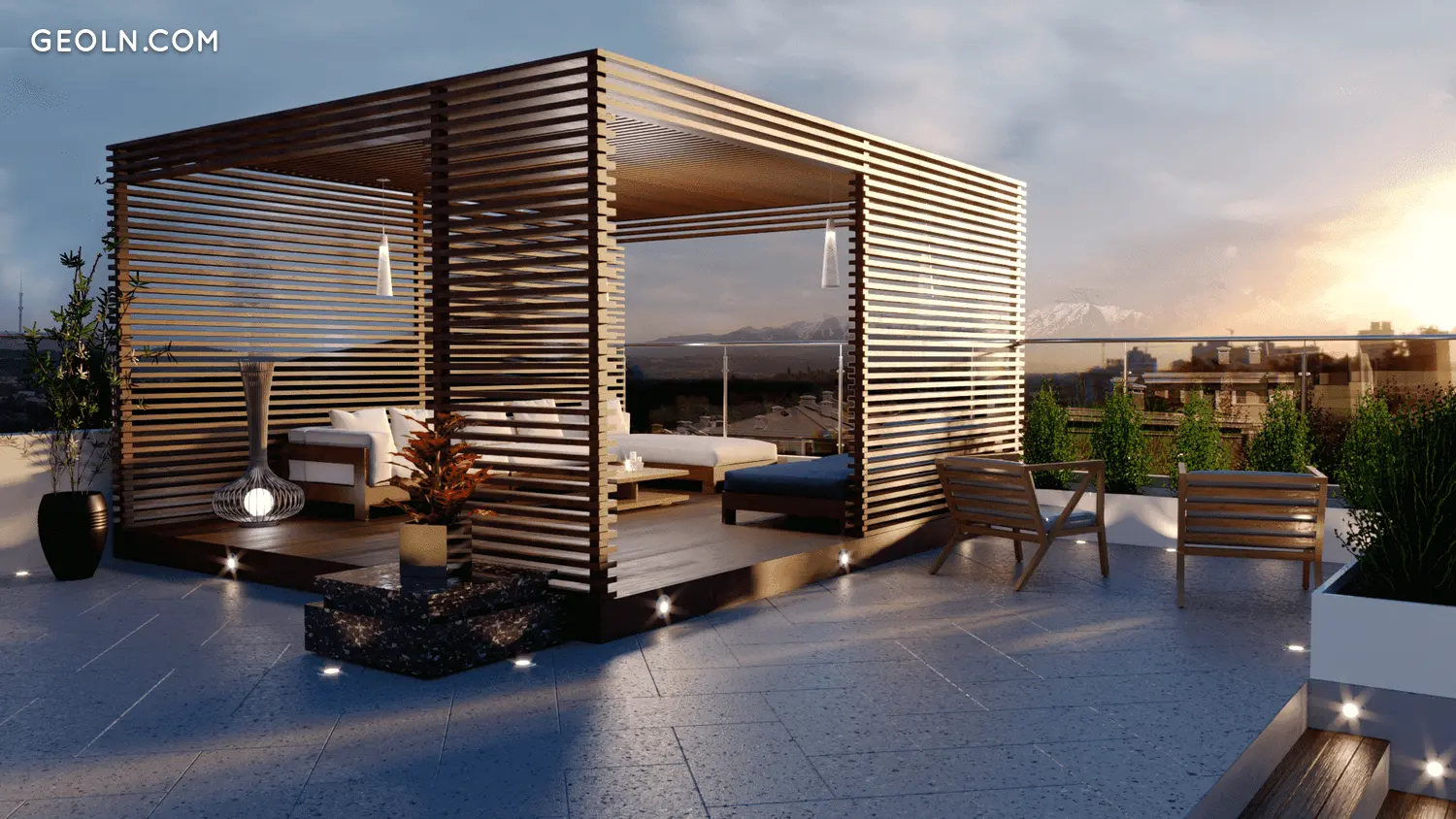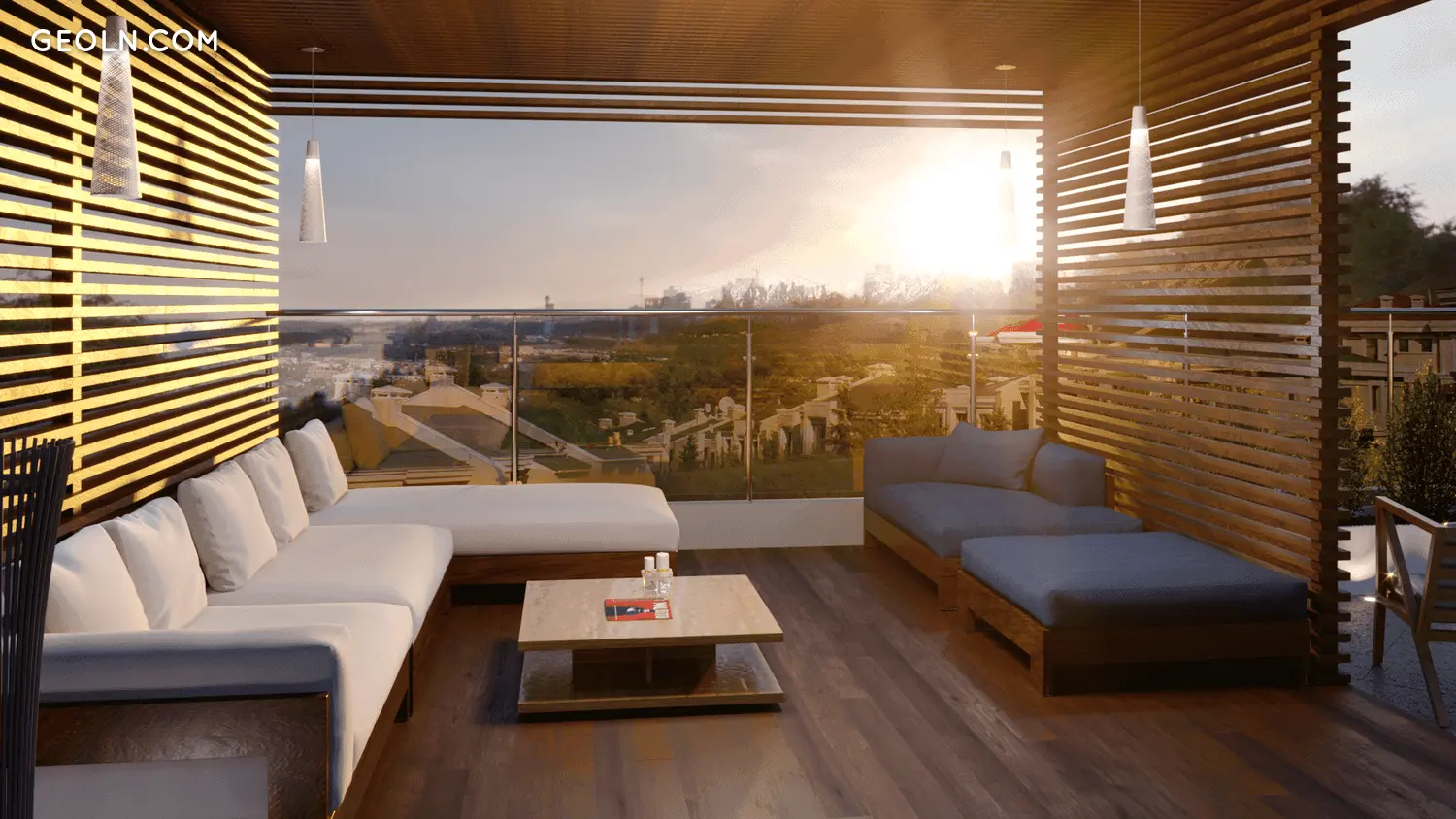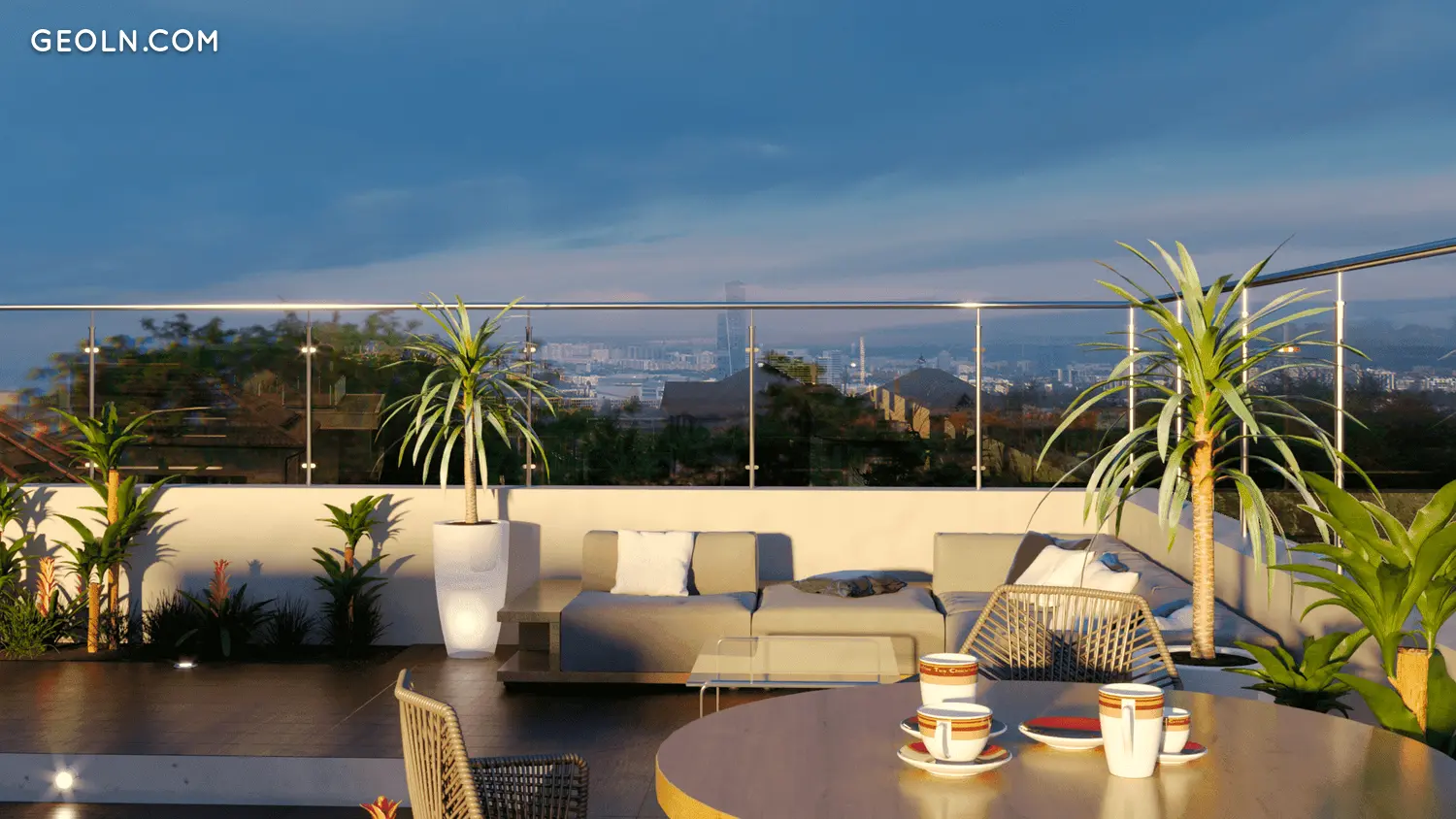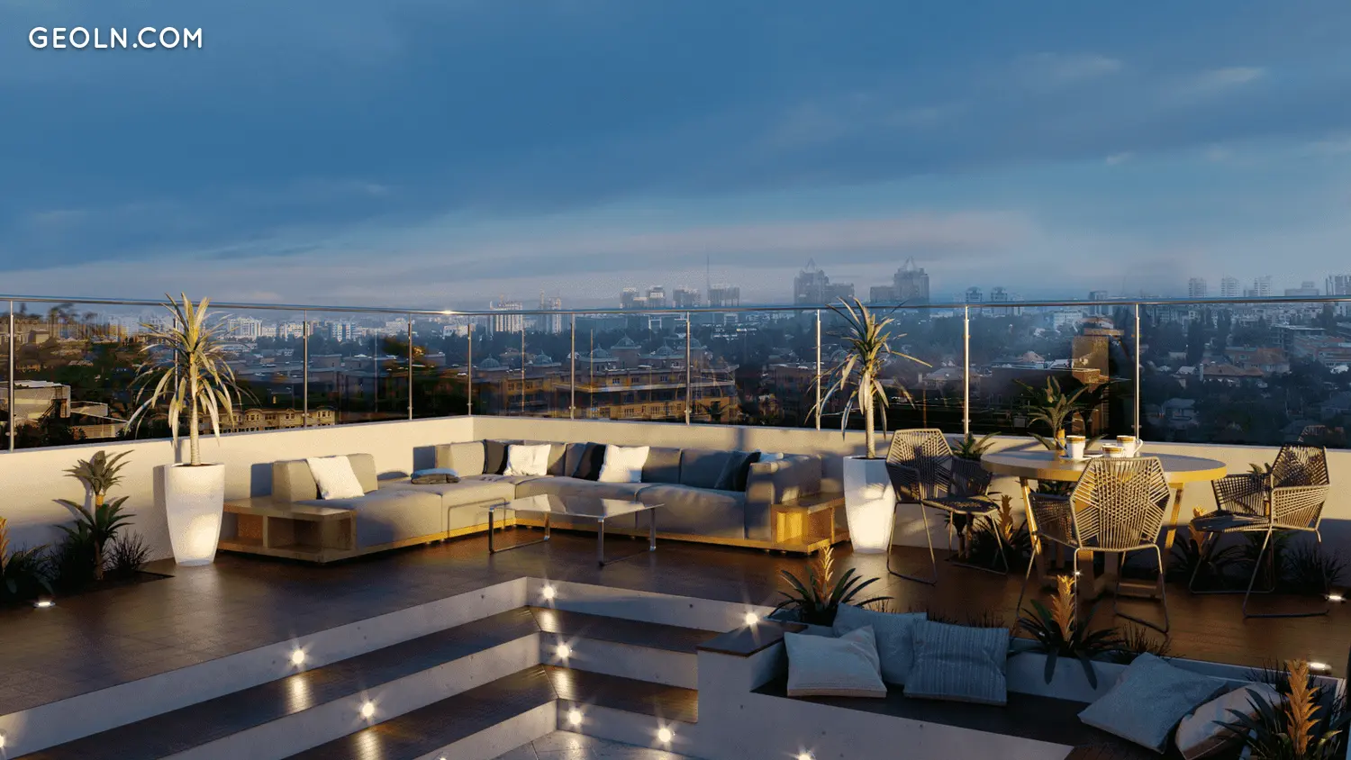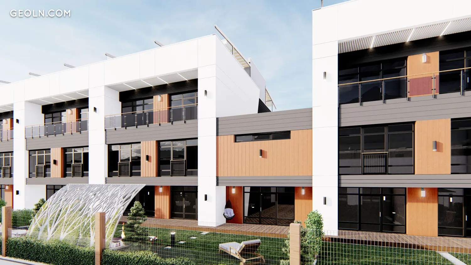Three-level business class townhouses are designed in a modern architectural style that emphasizes the elite status of future residents. Each house comes with an individual plot of land, a roof terrace and a personal garage.