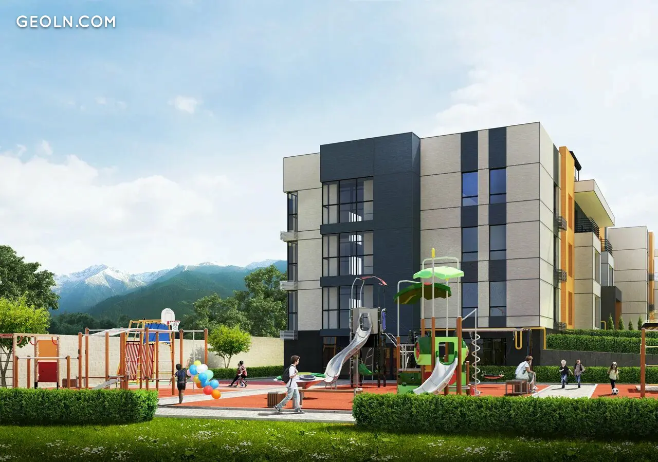 Residential complex Felicita in Almaty is being built in the Nauryzbaysky district on the street. Egora Redko, 78. The new building is located at the foot of the hill, surrounded by cottage-type houses and green spaces.