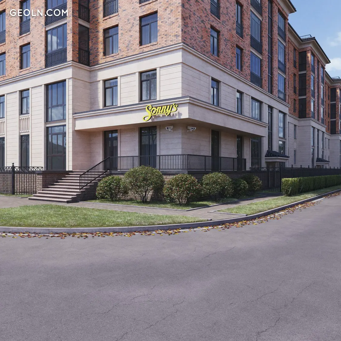 Bei der Wohnanlage „Etalon“ handelt es sich um einen mehrteiligen Neubau eines Mittelgeschosses im klassischen Stil mit begrünter Fläche und großzügigen Business-Class-Apartments.