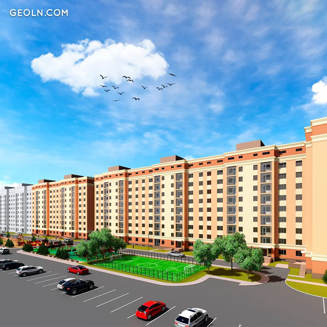 Small and medium-rise houses are located around, 550 meters from the new building is a busy road. The area has good ecology, there are no industrial enterprises nearby.