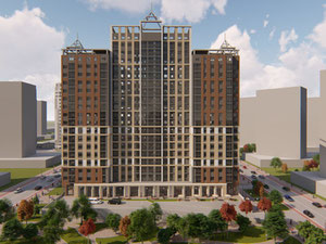 The house will be richly decorated with stucco, columns, porticoes and arched windows. Sculptural compositions are installed on its roof, domes are crowned with spiers. The apartments are equipped with window units with energy-saving two-chamber double-glazed windows, panoramic windows and balconies are provided for.