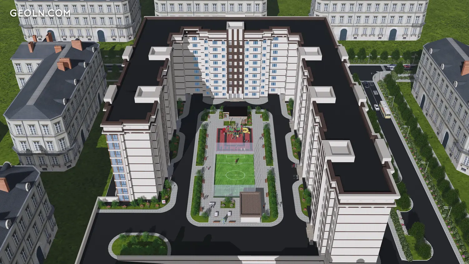 The new building is located in the left-bank part of Nur-Sultan near the intersection of Turan and Sygynak avenues. The business and administrative center of the capital, a large number of sports facilities and a modern medical cluster are relatively close. The Botanical Garden is 1.6 km away. The distance to the Presidential Park is about 3 km.