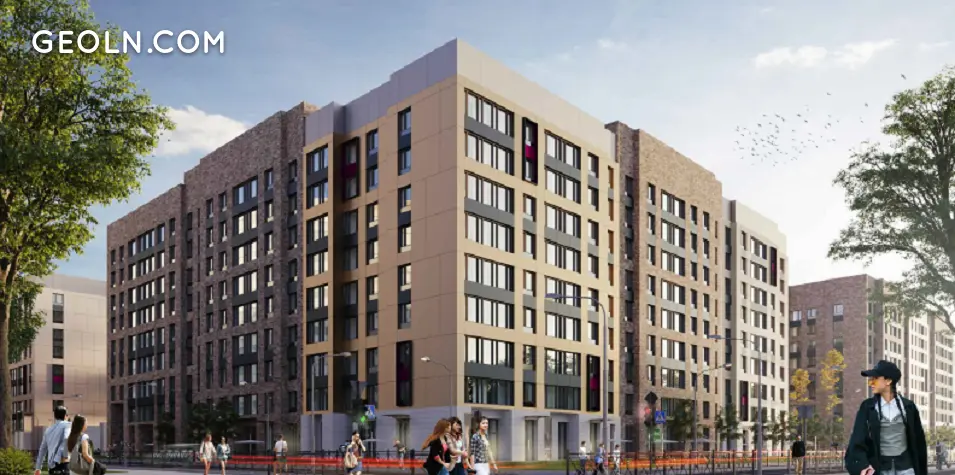 A large residential complex is located next to the new building, which has many urban infrastructure facilities, including shops, a supermarket, a bar and a restaurant, a coffee shop, and a pharmacy.