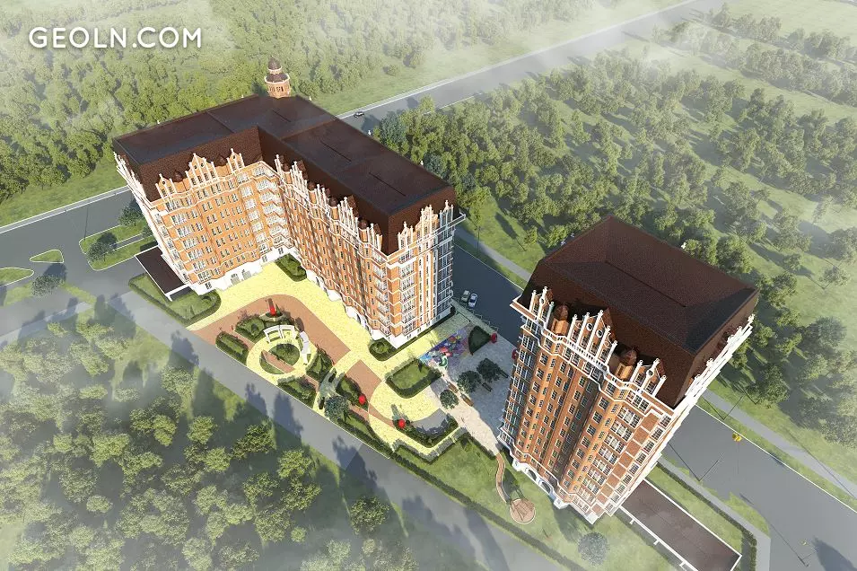 Construction is underway on a plot of 65 acres and involves the creation of a spacious and landscaped yard with children's playgrounds, benches, and landscape design elements. The first floors are reserved for commercial premises. It will accommodate: