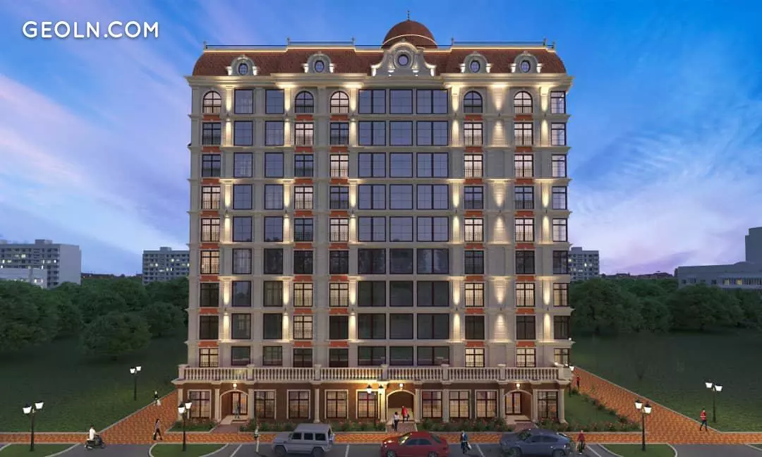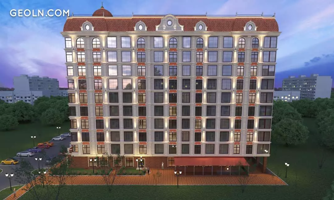 Railway "Medina" in Bishkek looks very comfortable, at home. This was achieved thanks to the warm color scheme, which uses terracotta and milky beige colors. The facades are decorated with large windows, including corner ones, with tinted glazing and dark frame bindings. The building has an L-shape, has 9 floors plus an attic. All communications in the house are centralized.