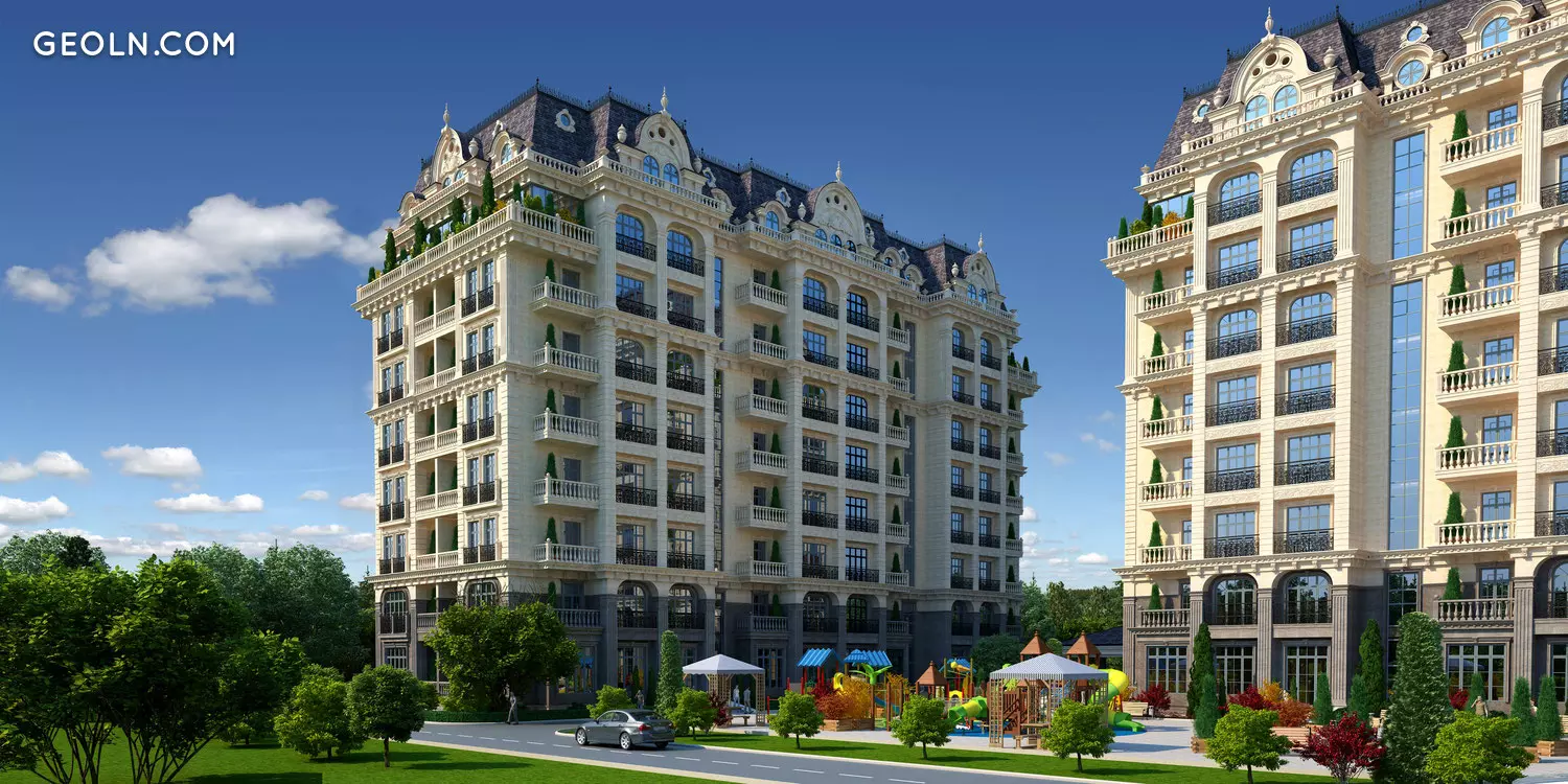 Three buildings with a height of 8 floors each will have a solid monolithic frame and brick exterior walls. Seismic design allows you to withstand loads up to 9 points. The developer himself defines the style of Central Park LCD in Bishkek as a modern classic. This is emphasized in many details of decoration and decor, including a ventilated facade made of natural materials, exquisite balcony railings, a roof that is classic for European architecture.