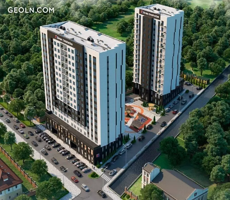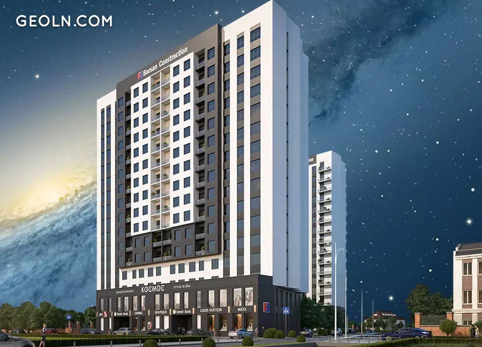 The Cosmos residential complex is under construction in Bishkek near the intersection of Abay and Akhunbaev streets. Ala Archa flows just 300 meters away, and the Great East Chui Canal literally passes on the border of the new building.