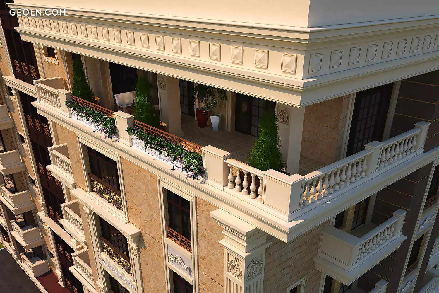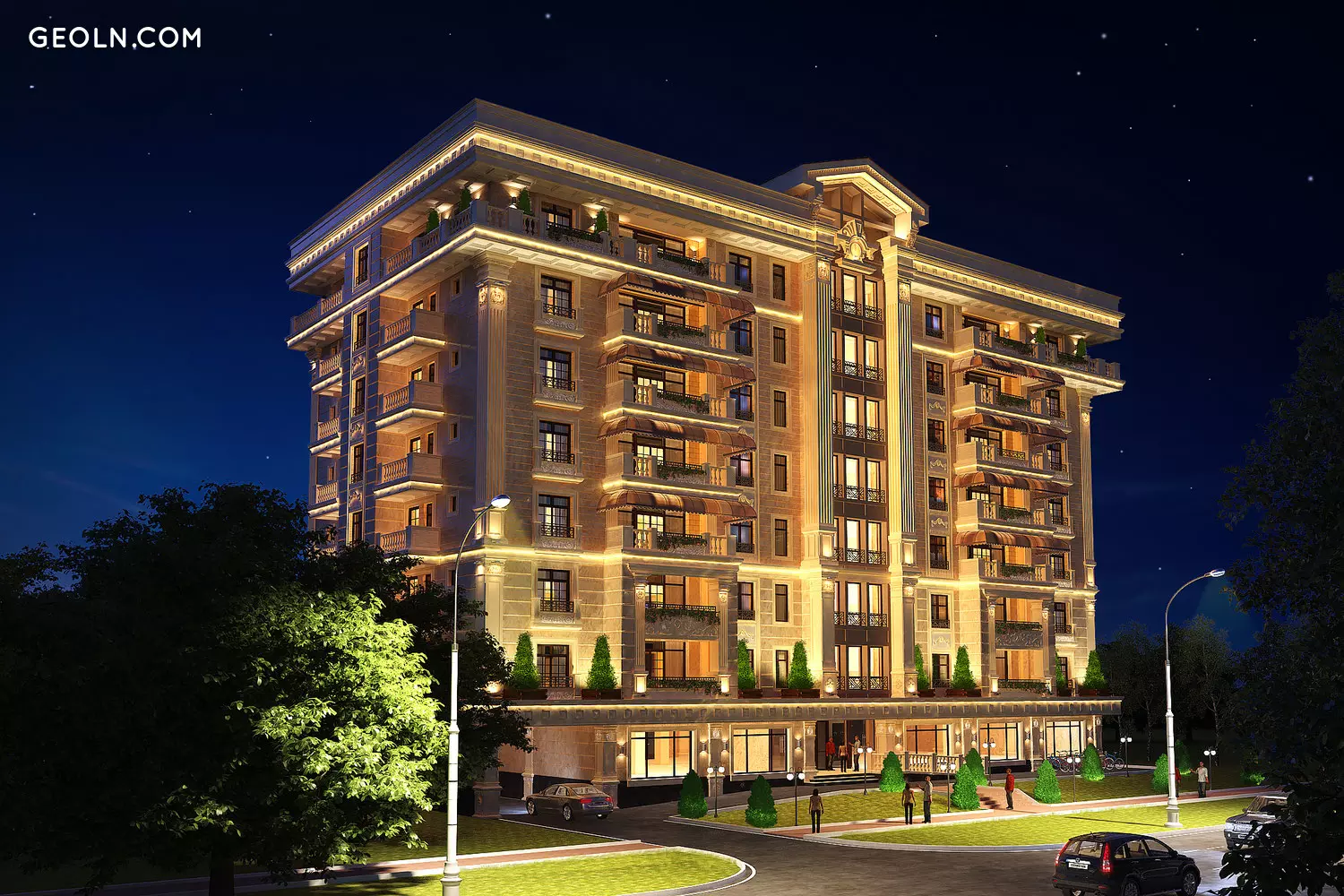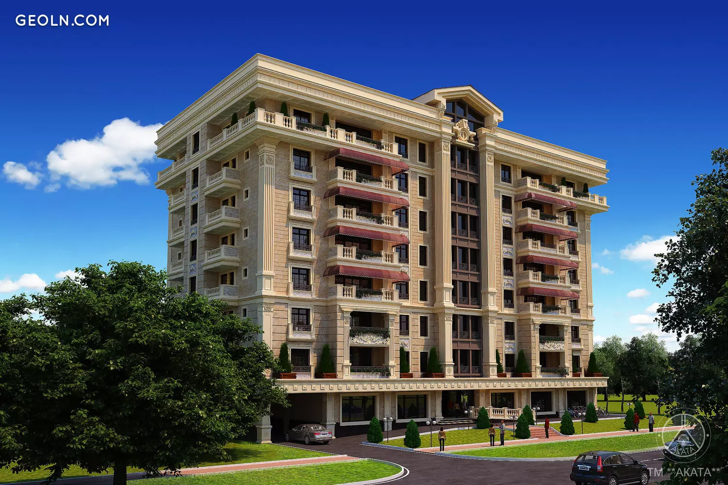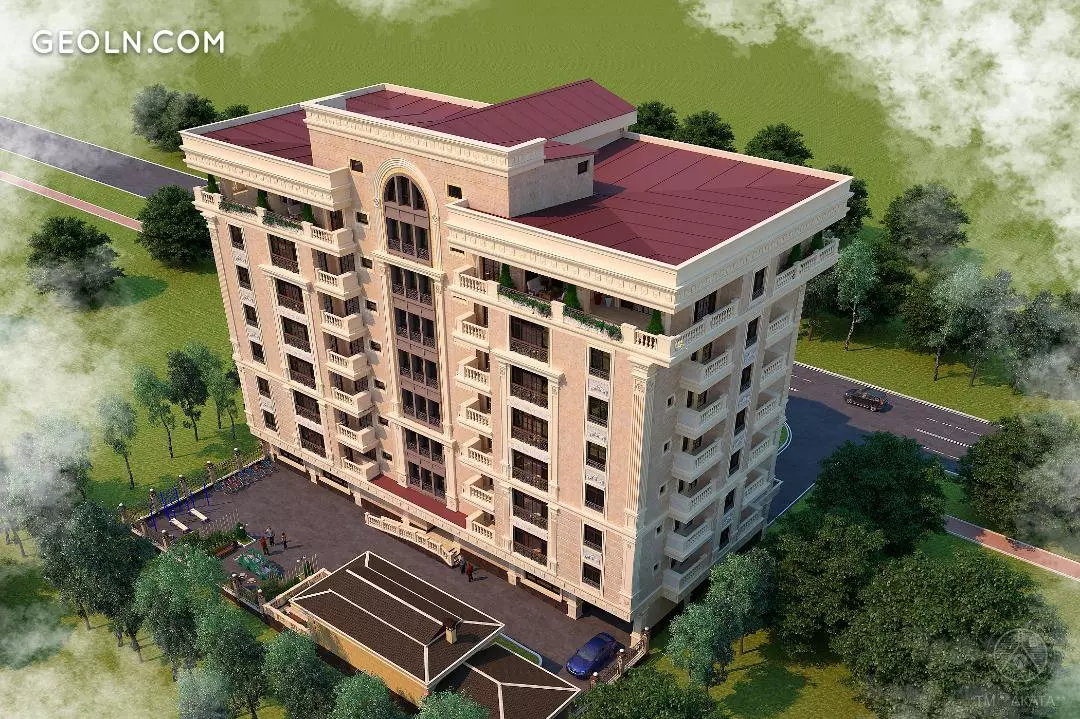 Orto-Say CD in Bishkek is an 8-story building with a solid monolithic frame, burnt brick exterior walls and a travertine-decorated facade. For the construction of this house, an author's project was developed, in which there are elements of Greek architecture, which can be traced in many decorative elements, balcony fences and even the design of the territory.