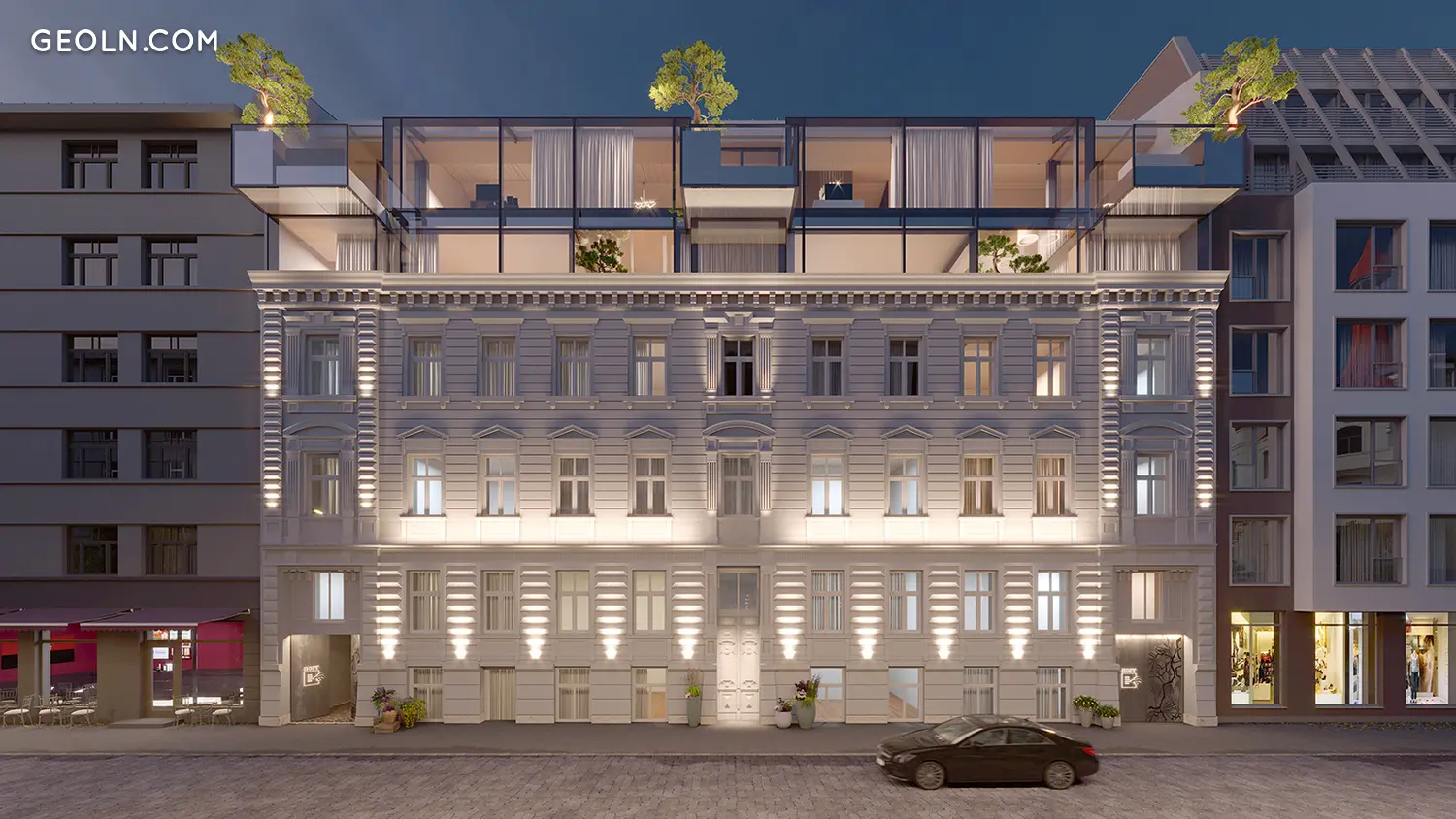 It is the trinity of a green view of the world and respect for the history of the city and modern architecture. The careful restoration of the historic fasade, installation of trees as part of the building's architecture, and structural glazing as a mirror reflecting the surrounding historical building and serving as a stage for the installation of trees. Just like a space that says: "I'm not in charge here, I'm just giving you the opportunity to admire the world outside and inside of me."