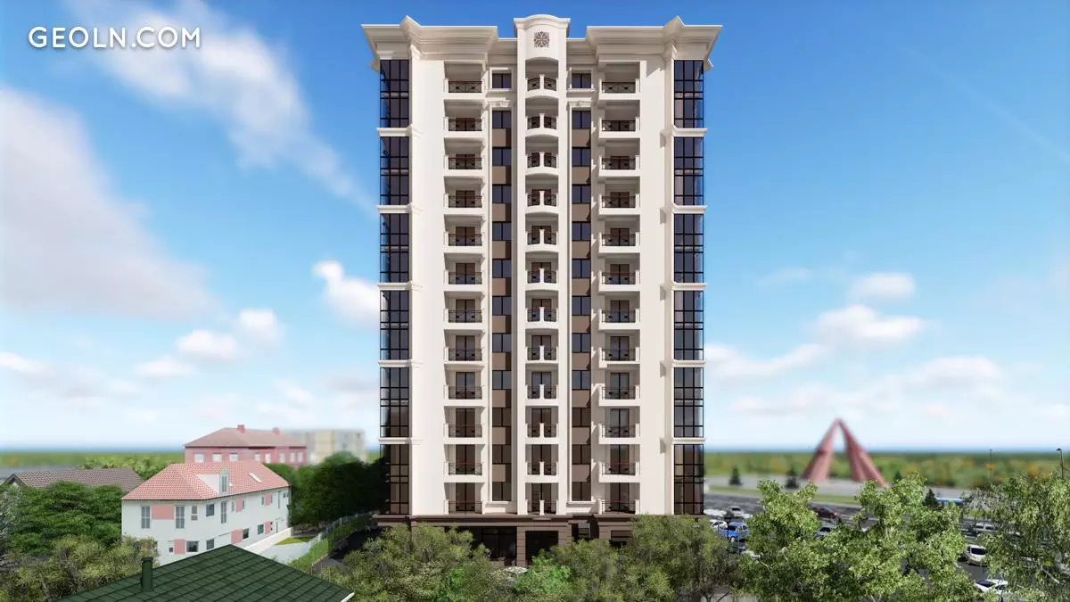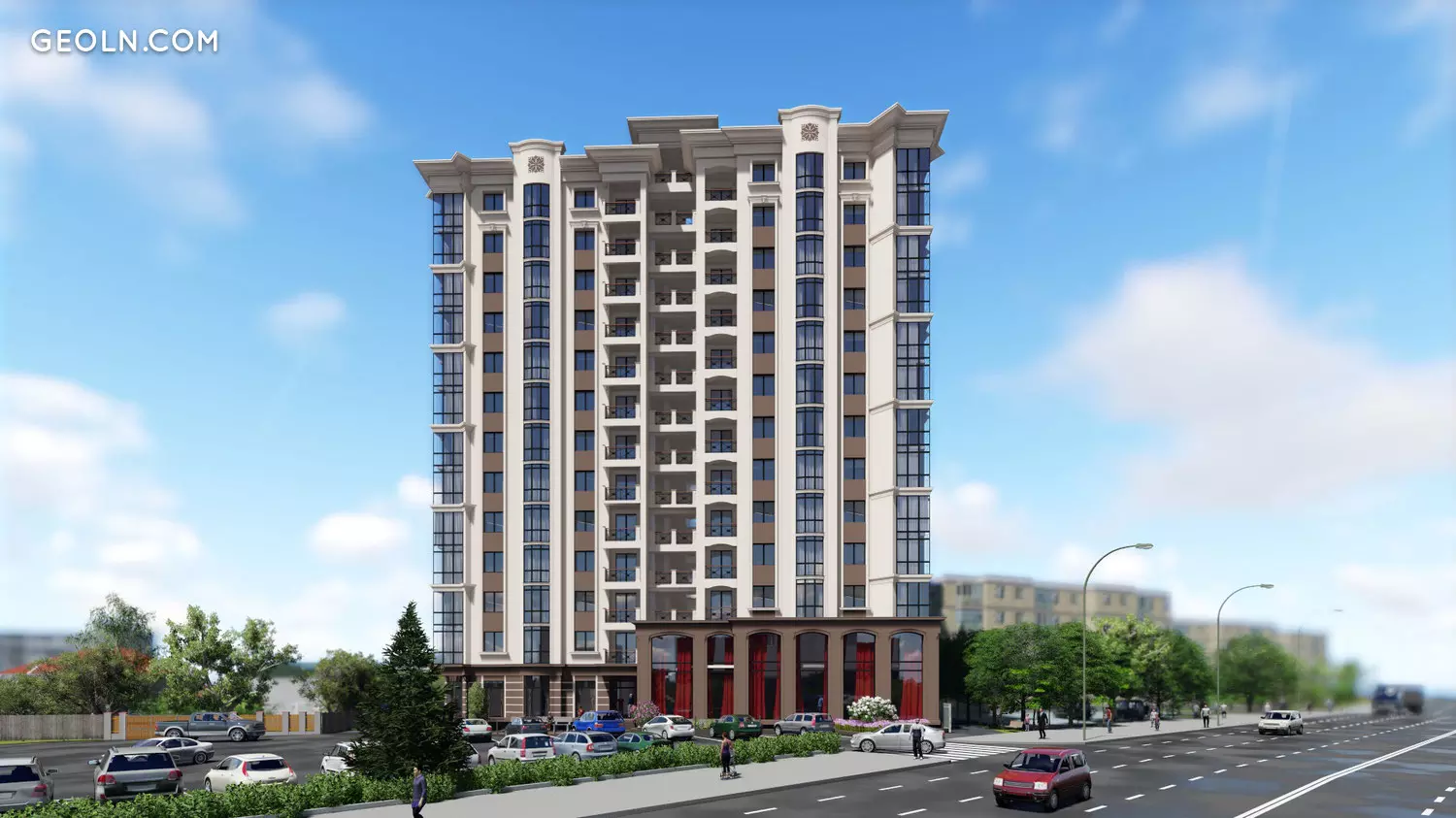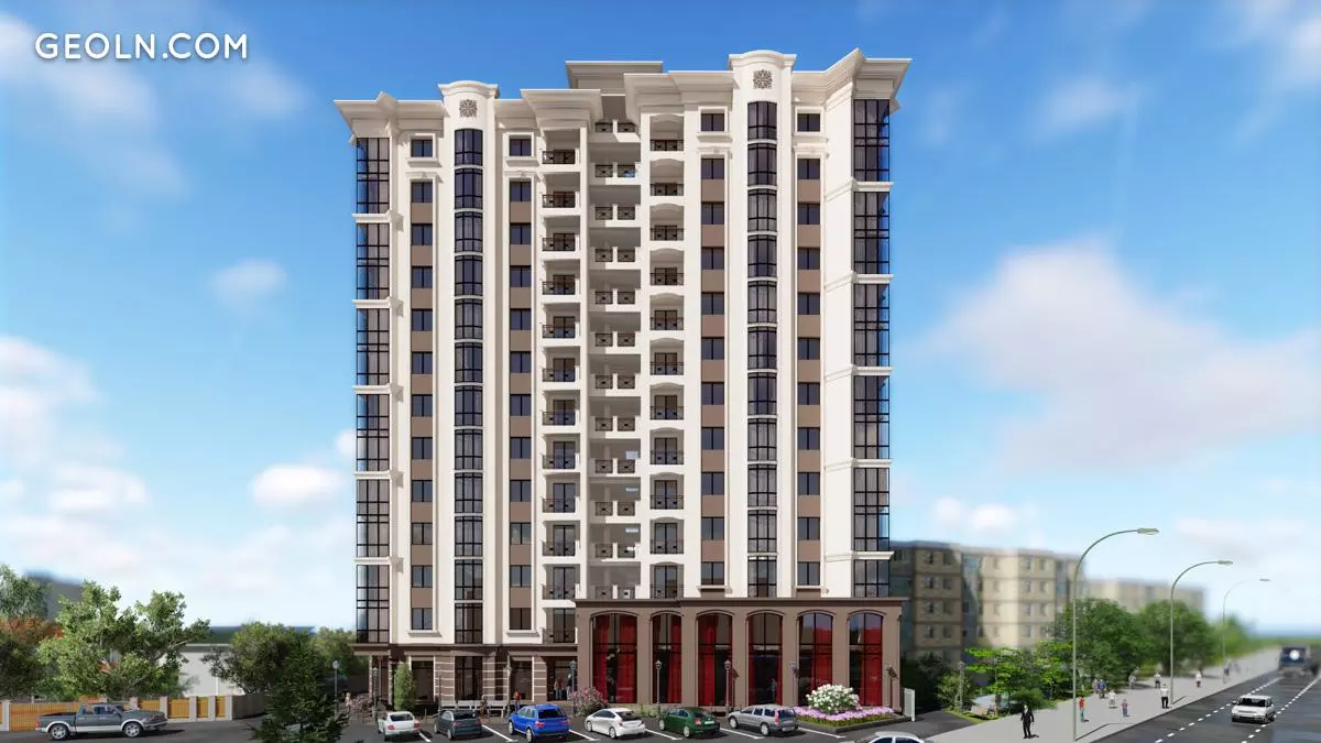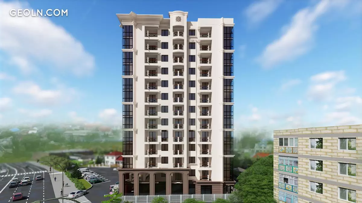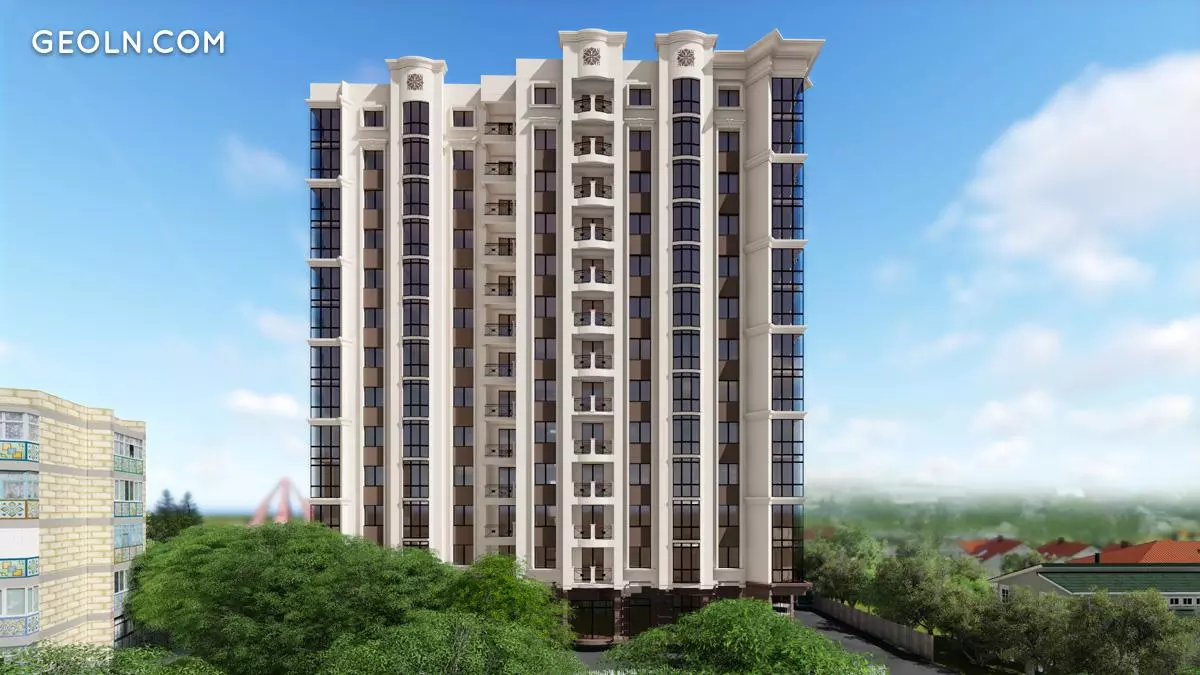 The elite residential complex consists of a multi-storey building with underground guarded parking at ground level.