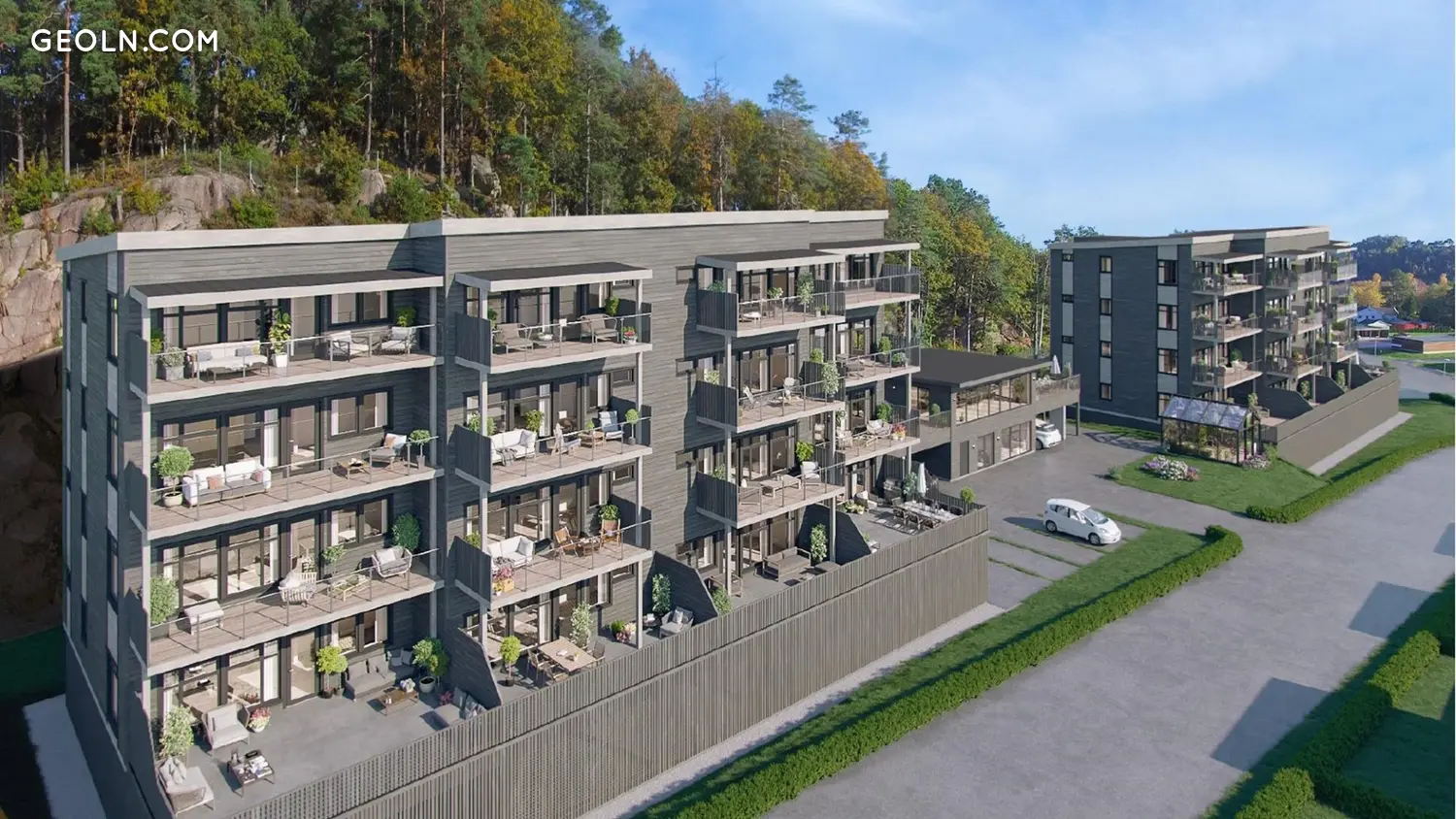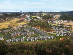 Moy Terrasse is a housing project in collaboration with Arendal Boligbyggelag. The housing project is organized as a housing association. This means that the residents jointly own the buildings, communal facilities and outdoor areas.