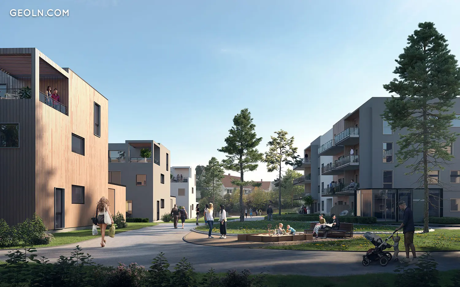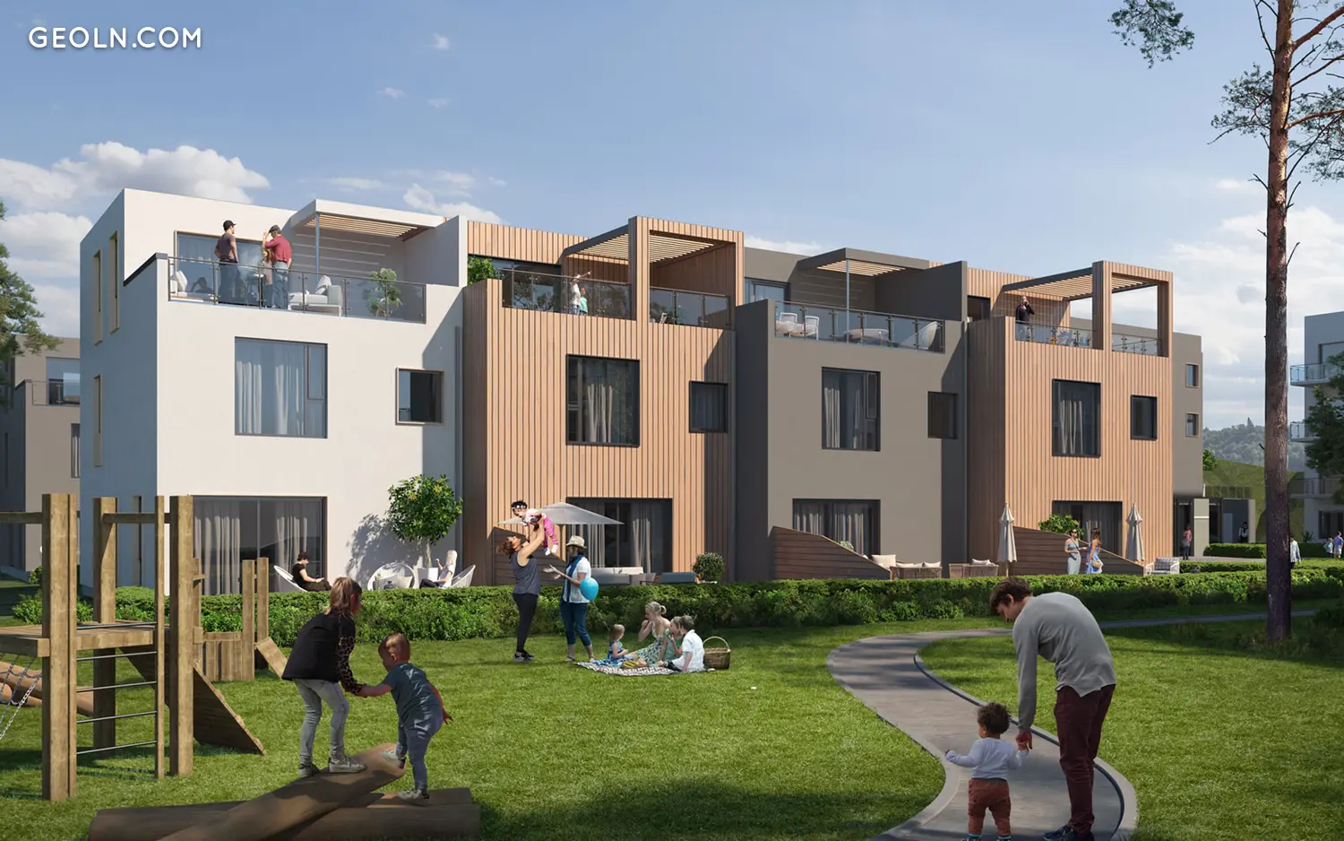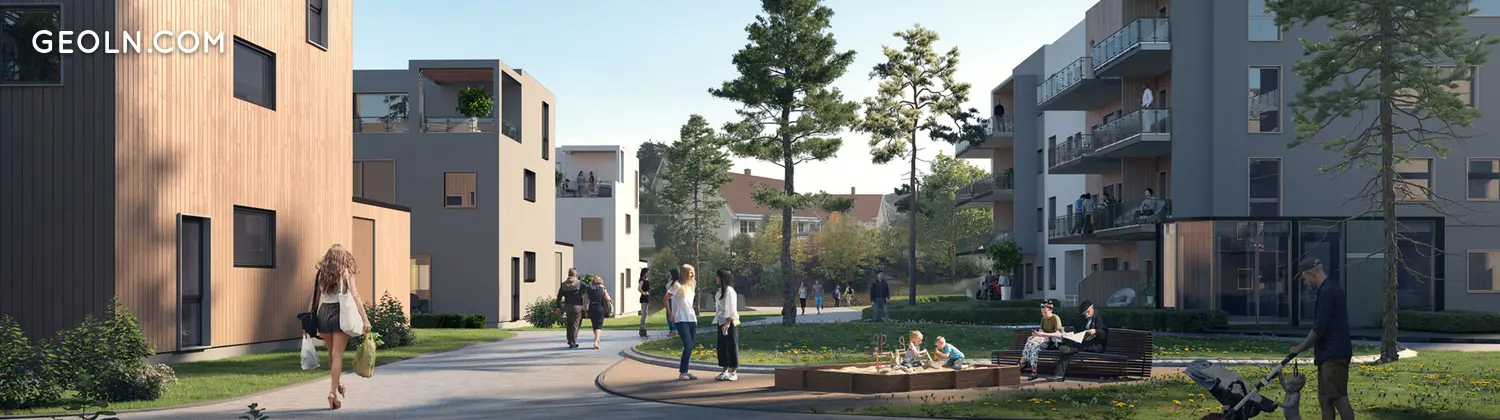 The pine top is at the crossroads between what you need to have to make everyday life go around, and what you need to charge the batteries. Here it is as quick to stroll to the shop as to the forest edge, where the city and the secret bathing area are just as easily accessible. On the ridge above Skårersletta, a collection of exciting homes will soon appear that will have a great location. The apartments and terraced houses will be well secluded from the densely populated buildings that will characterize the plain below, at the same time you are just a short walk from the Triad center, school and kindergarten. Marka is right next door, as is the bus stop that takes you to Helsfyr in 15 minutes.