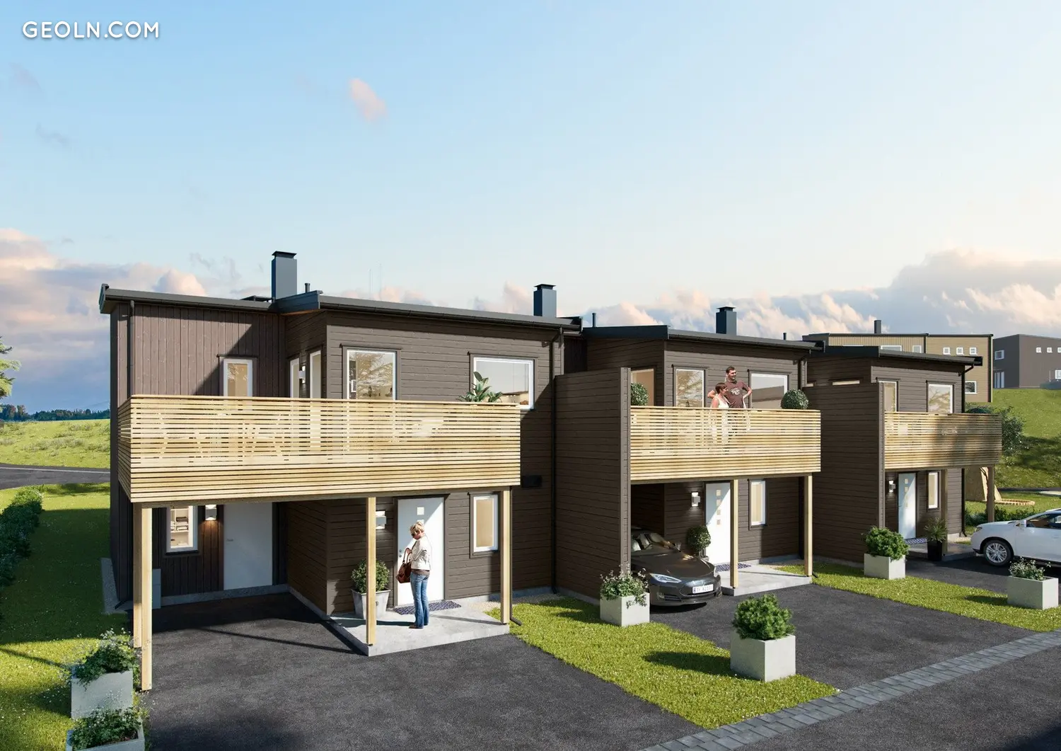 The Pepperstadkollen project consists of a total of approximately 225 homes divided into different types of housing. The homes are in a modern funky-inspired style, with good common areas and green outdoor areas. The terraced houses come in three different variants. These will be spacious terraced houses over two floors with three bedrooms, two living rooms and two bathrooms - large terrace, private garden and practical carport.