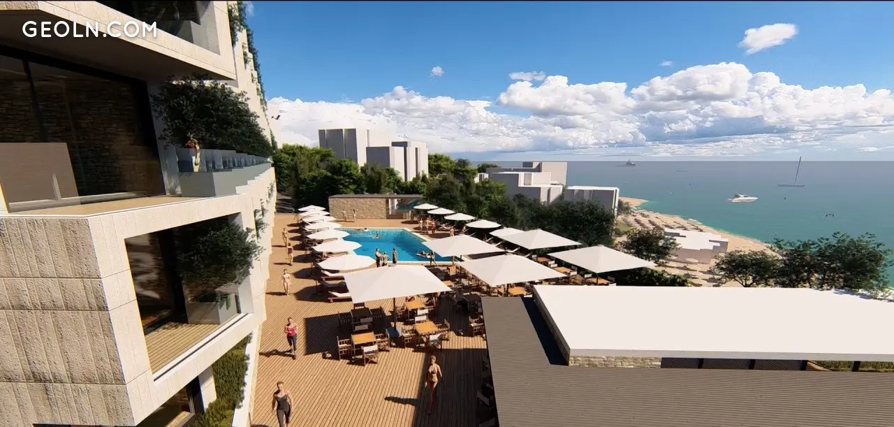W kompleksie z tymi obiektami znajdzie się również basen, dwupoziomowy garaż i prywatna plaża.