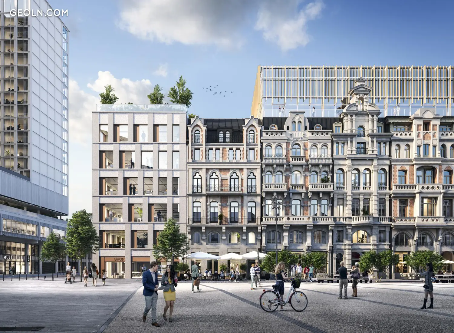 Historyczne fasady budynków w stylu Belle Époque przy Place De Brouckère/De Brouckèreplein zostaną zachowane i odnowione z poszanowaniem ich istniejącej tożsamości.