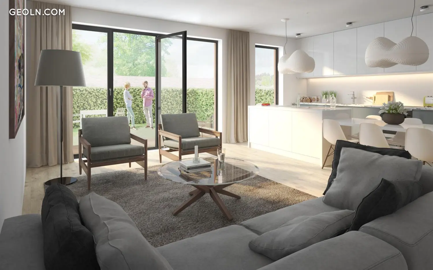 Residentie Kemp oferuje zróżnicowaną gamę mieszkań i penthousów z 1 do 3 sypialniami o powierzchni od 82m² do 122m². Wszystkie apartamenty posiadają przestronne tarasy dzienne z widokiem na otaczającą zieleń. Struktura elewacji jest elegancka i ponadczasowa i składa się głównie z białego tynku z akcentami w jasnoszarym betonie architektonicznym, tworząc przyjemny kontrast z zielonym otoczeniem parku. Do wszystkich apartamentów można dostać się windą, która jest połączona z podziemnym parkingiem, gdzie znajdują się również prywatne komórki lokatorskie.