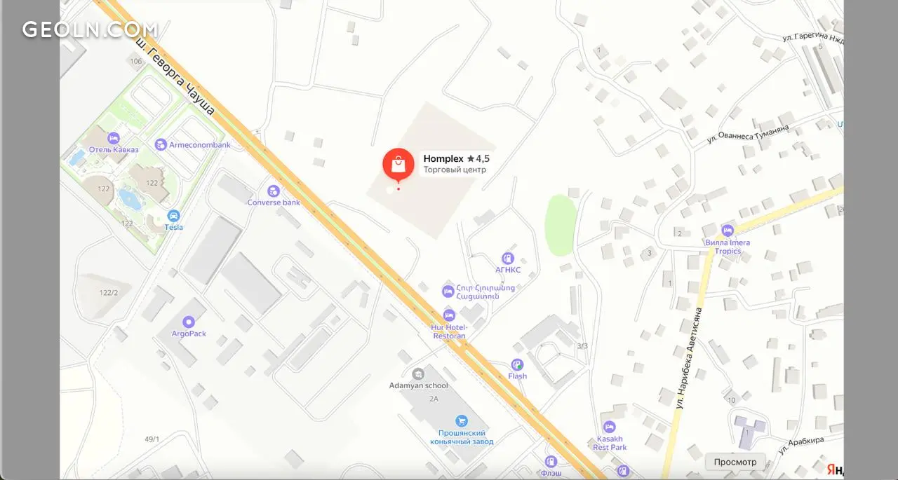 Light House, Terzian’s Home, GG Motors, LWKona, Ozon, Katran, Wildberries, Автосервис №2415, Bunna Imera, Tropics, Супермаркет, Котайкский регион, Bunker Doors, Отель (40 м), Adamyan School, ArgoPack, Отель "Кавказ", ATHIC Complex, USLOU Complex, ATHIC Complex, America Armenia, San Marco, Европейская международная школа, Конячный завод, и другие объекты.