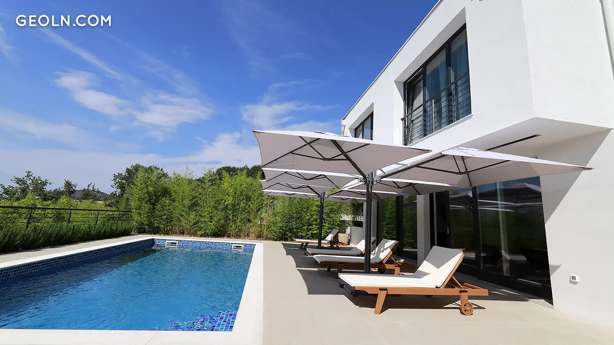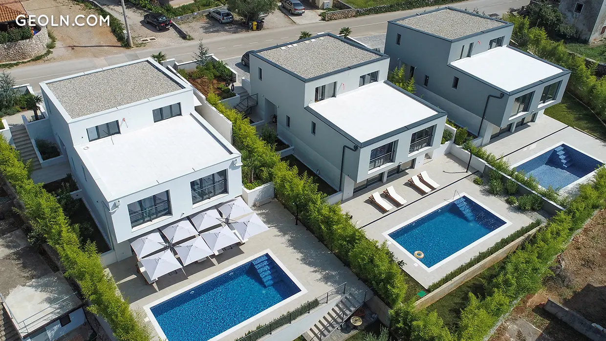 Ta atrakcyjna, nowoczesna inwestycja mieszkaniowa składająca się z 3 domów położona jest na zachodnim wybrzeżu wyspy z widokiem na zatokę Kvarner. Tylko kilka minut jazdy od najbliższej plaży, wszystkie trzy nieruchomości oferują prywatny basen i panoramiczny widok na morze. Trzy sypialnie, wszystkie z łazienkami, przestronny salon płynnie połączony z tarasem przy basenie i jadalnia na świeżym powietrzu wraz z otwartą kuchnią, wszystko to stanowi idealne miejsce na wypoczynek na wyspie.