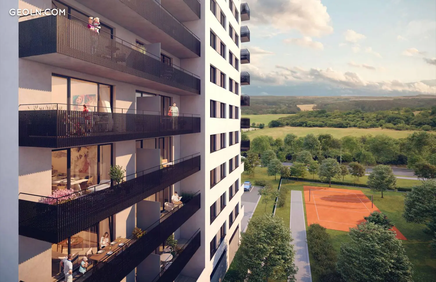 Inspiracją dla projektu Vital Kamýk był zdrowy styl życia, aktywne podejście i wspólnota. Troska o zdrowie mieszkańców domu znalazła zatem odzwierciedlenie w samych fundamentach budynku. Wybraliśmy wysokiej jakości ekologiczne materiały, zadbaliśmy o zdrowy klimat w mieszkaniach oraz przyjemną temperaturę zimą i latem. Możesz poznać nowych przyjaciół na tarasie wypoczynkowym na dachu, który nazwaliśmy Harmonie. Będzie to oaza relaksu, w której można poczytać lub zagrać w szachy, a także przestrzeń wspólnoty do spotkań towarzyskich przy grillu, wzbogacona widokami na pełną zieleni okolicę. Dzieci z pewnością ucieszą się na placu zabaw przy domu, który będzie również miejscem aktywnego wypoczynku na elementach ćwiczeń czy jodze. Lubisz jeździć na rowerze? Wtedy z pewnością ucieszy Cię pętla rowerowa i stacja obsługi przed domem. Vital Kamýk to idealne miejsce do aktywnego i zdrowego stylu życia