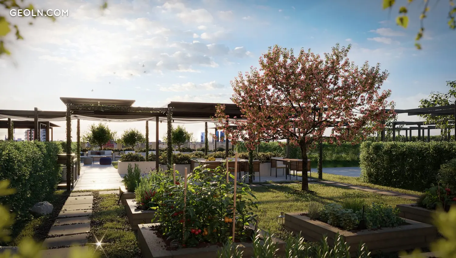 Zagospodarowany ogród na dachu – oaza w miejskim zgiełku. Na dziedzińcu Vektora znajdziemy zaskakujące miejsce na relaks, wypoczynek i ogrodnictwo, pełne drzew, rabat i prywatnych zakamarków.