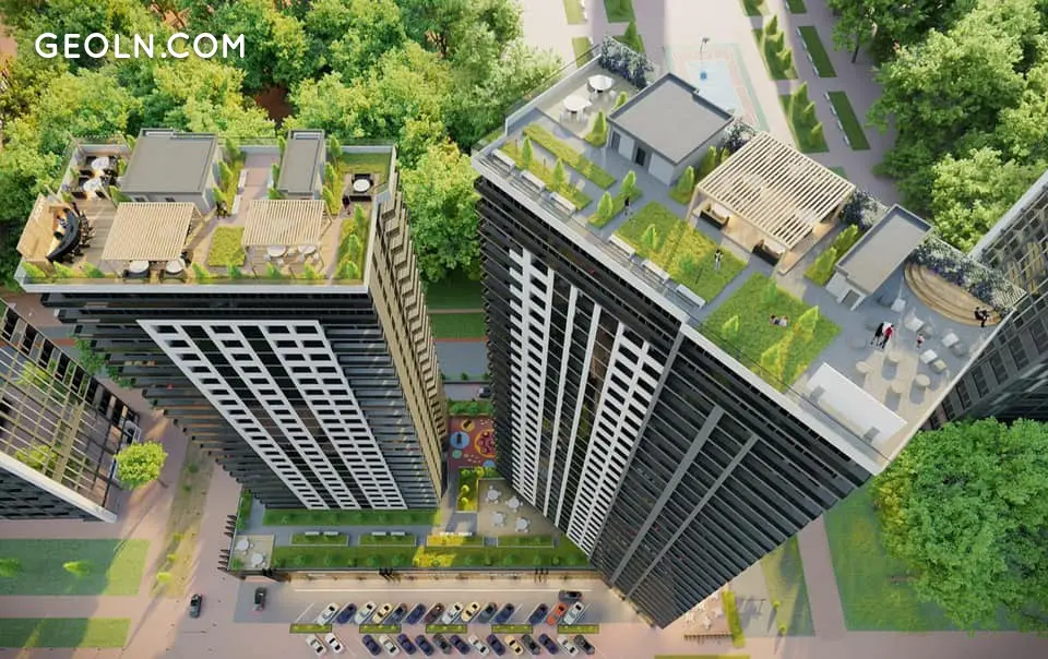 Zespół mieszkalny składa się z dwóch domów o wysokości od 26 do 30 pięter, połączonych stylobatem. Budynki zostały zaprojektowane z uwzględnieniem wszystkich współczesnych standardów jakościowych oraz specyfiki lokalnego klimatu.