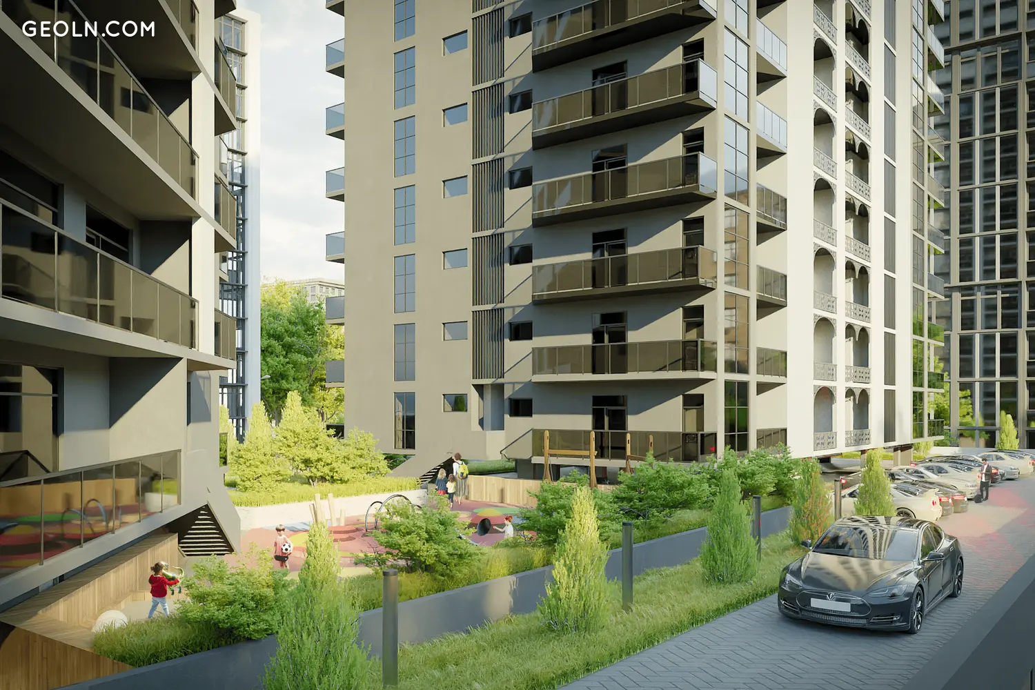 Kompleks mieszkaniowy przy alei Zhiuli Shartava, 30 - nowe wieżowce z luksusowymi apartamentami o nowoczesnym układzie i własną infrastrukturą.