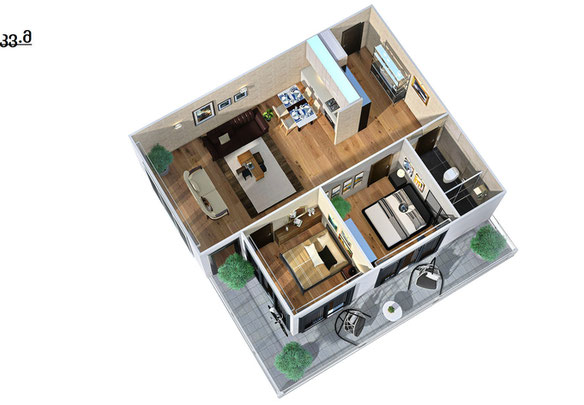 Domy budowane są w technologii szkieletowej monolitycznej, która zapewnia dobrą odporność na trzęsienia ziemi i ułatwia właścicielom zmianę układu wnętrza domu. Elewacje są ocieplone przyjaznym dla środowiska izolatorem ciepła i pokryte wysokiej jakości naturalnymi materiałami.