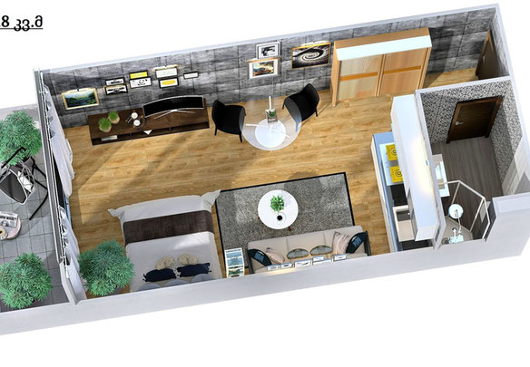 Zgodnie z projektem na obsługiwanym dachu stylobate zostaną stworzone wszelkie warunki, aby stworzyć wygodną strefę, w której mieszkańcy i goście kompleksu będą mogli spędzać wolny czas - instalowane są tu altany, stoły i wygodne meble, a w nich sadzone są rośliny wanny.