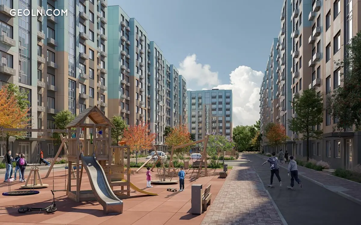 Na dziedzińcach znajdują się nowoczesne place zabaw dla dzieci w różnym wieku oraz boiska sportowe ze sprzętem do ćwiczeń na świeżym powietrzu. Trwają prace krajobrazowe - rozbijane są rabaty kwiatowe, sadzi się krzewy ozdobne i drzewa. Dla dorosłych mieszkańców tworzone są komfortowe tereny rekreacyjne z altanami.