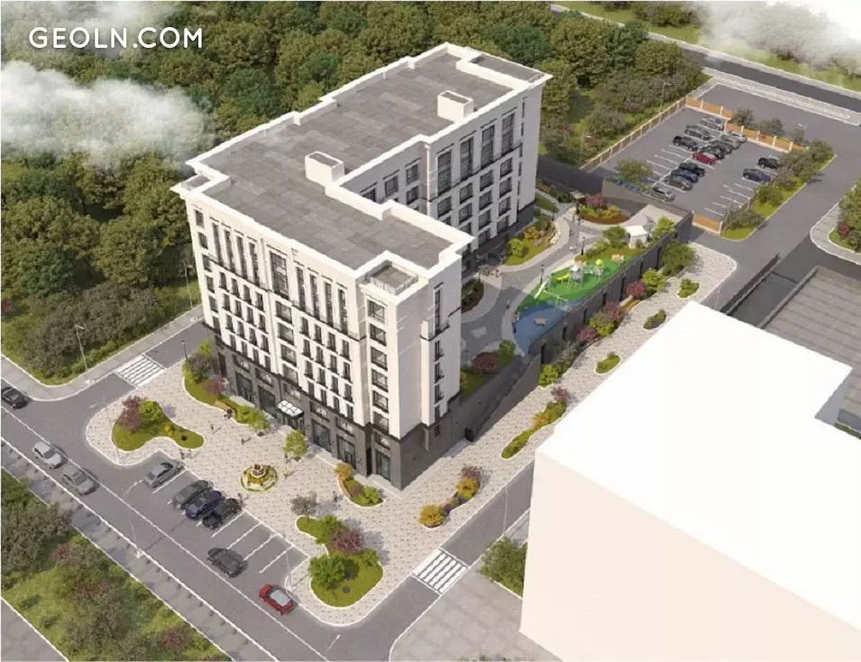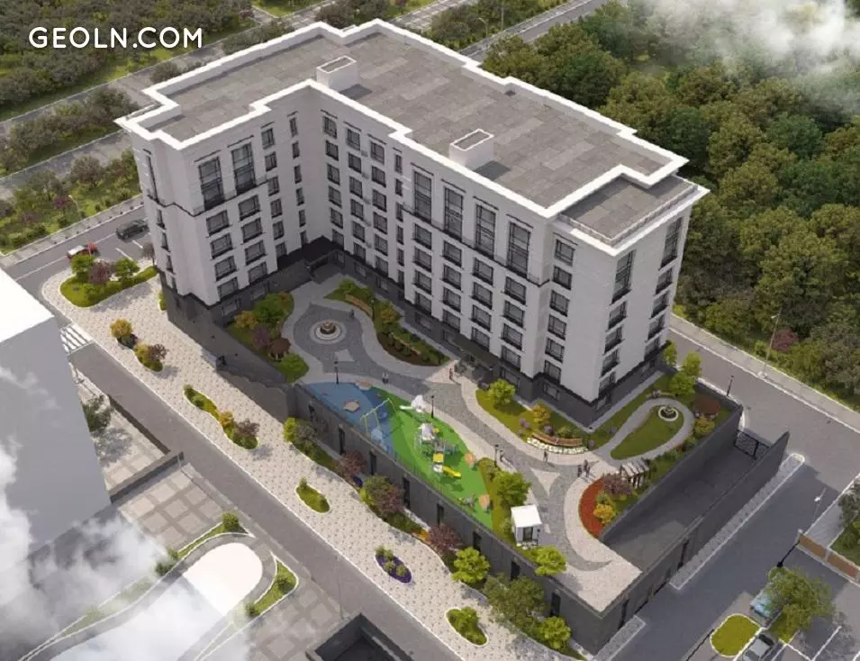 Dom w kształcie litery L tworzy przytulny dziedziniec, na terenie którego zaplanowano kompleks prac związanych z ogrodnictwem krajobrazowym i krajobrazowym. Szczególny nacisk kładzie się na bezpieczeństwo życia. Możesz wjechać na terytorium tylko za pomocą specjalnych kart lub za pomocą domofonu. Nadzór wideo odbywa się na całym obwodzie, którego zdjęcie jest dostępne dla każdego z mieszkańców. Pracownik ochrony będzie regularnie pełnił służbę w posterunku bezpieczeństwa.