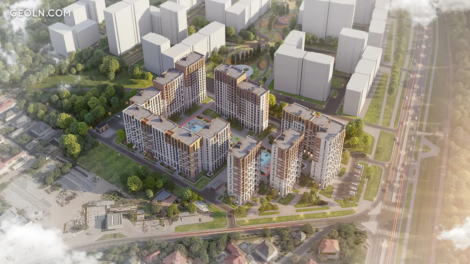 Dla mieszkańców tworzone są tereny rekreacyjne z altanami, prowadzona jest architektura krajobrazu okolicy. Pod dziedzińcem powstaje jednopoziomowy parking podziemny. Ponadto wzdłuż obwodu kompleksu znajduje się parking naziemny do tymczasowego parkowania samochodów gości.