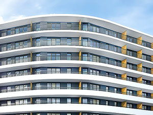 Elewacja obiektu jest utrzymana w jasnej kolorystyce, z wyrazistymi akcentami w postaci płytki ceglanej w kolorze naturalnym. Wizualnej lekkości bryle budynku nadają duże okna oraz szerokie balkony ze szklanymi balustradami.