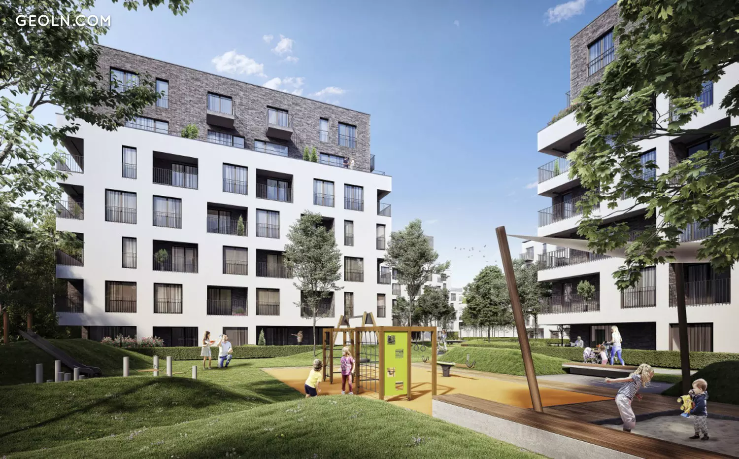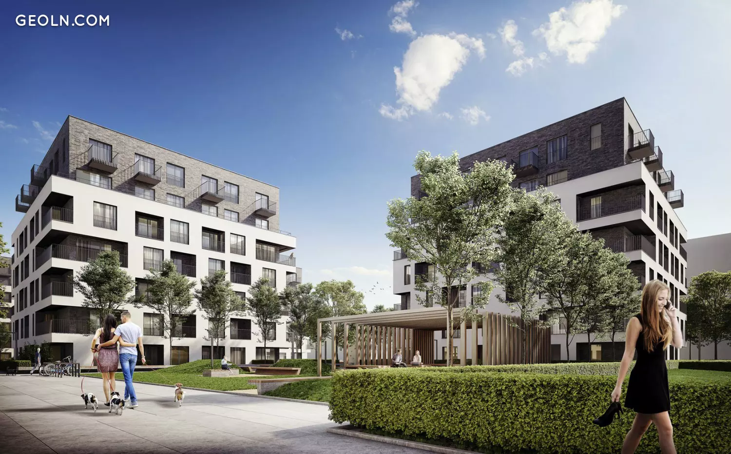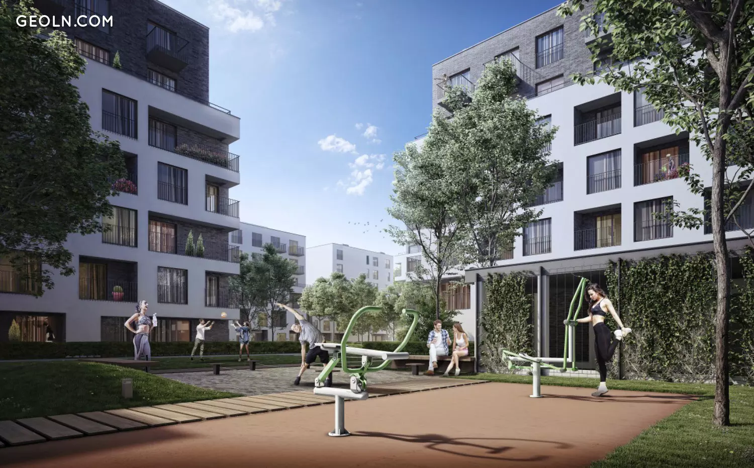 W częściach wspólnych osiedla zaprojektowane są plac zabaw, dziedziniec z nasadzeniami zieleni i drewnianymi ławkami, ogród, siłownia plenerowa, stojaki na rowery, boksy rowerowe. Do parkowania samochodów przewidziane są miejsca postojowe w 1-poziomym garażu podziemnym. Na parterach budynków dostępne są sklepy, restauracje oraz punkty usługowe.