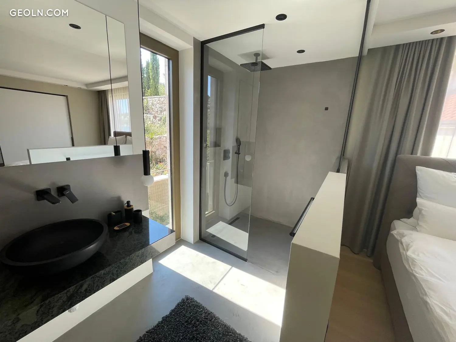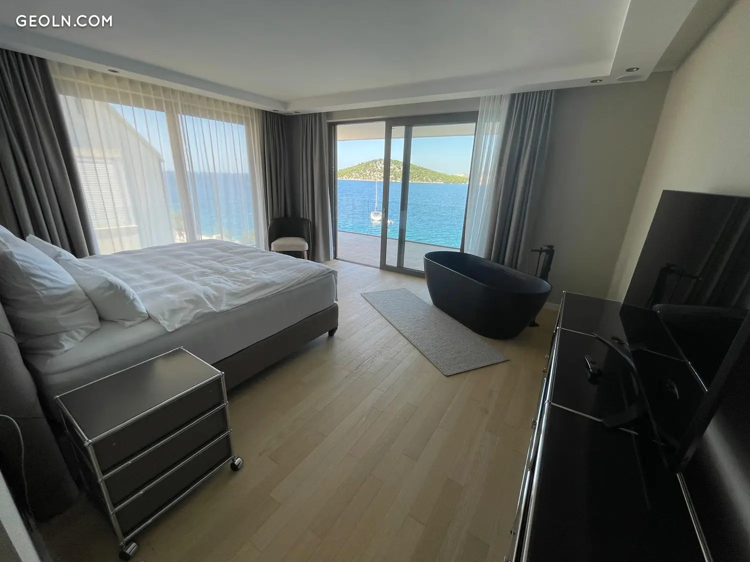 Na sprzedaż luksusowa willa na przedmieściach Rogoznicy, położona w ekskluzywnej lokalizacji w pierwszym rzędzie do morza. Willa o powierzchni 340 m2 ma trzy piętra połączone wewnętrznymi schodami i oferuje wspaniały, otwarty widok na morze i okolicę. Ta wspaniała willa łączy w sobie nowoczesny design, elegancję i funkcjonalność, zapewniając właścicielowi poczucie luksusu i komfortu. Dzięki dużym oknom sięgającym od podłogi do sufitu willa jest pełna naturalnego światła i pozwala podziwiać wspaniałe, krystalicznie czyste morze pod każdym kątem. Willa jest w pełni umeblowana i wyposażona w najnowocześniejsze technologie: system inteligentnego domu, ogrzewanie podłogowe, alarmy bezpieczeństwa i przeciwpożarowe, kamery monitoringu, centralną klimatyzację, elektryczne rolety i rolety okienne. Podłogi we wszystkich pokojach wyłożone są parkietem. Dodatkowe korzyści zapewnia winda, która łączy wszystkie trzy piętra willi.