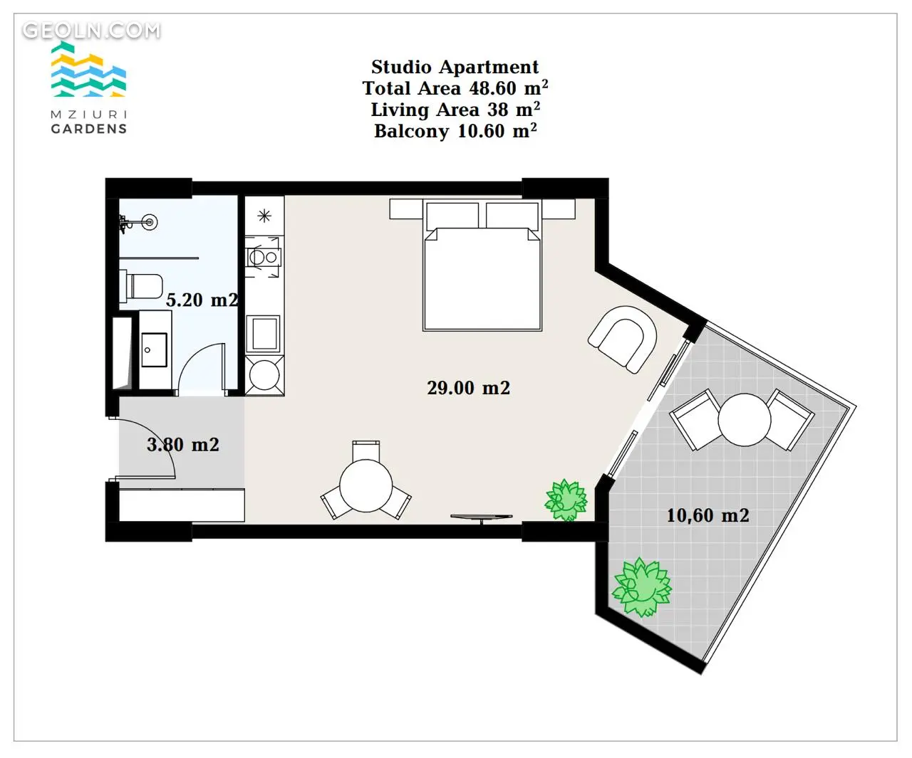 Не упустите возможность приобрести апартамент в уникальном жилом комплексе "Мзиури Гарденс" с великолепным видом на море и всеми удобствами для комфортного и здорового проживания!