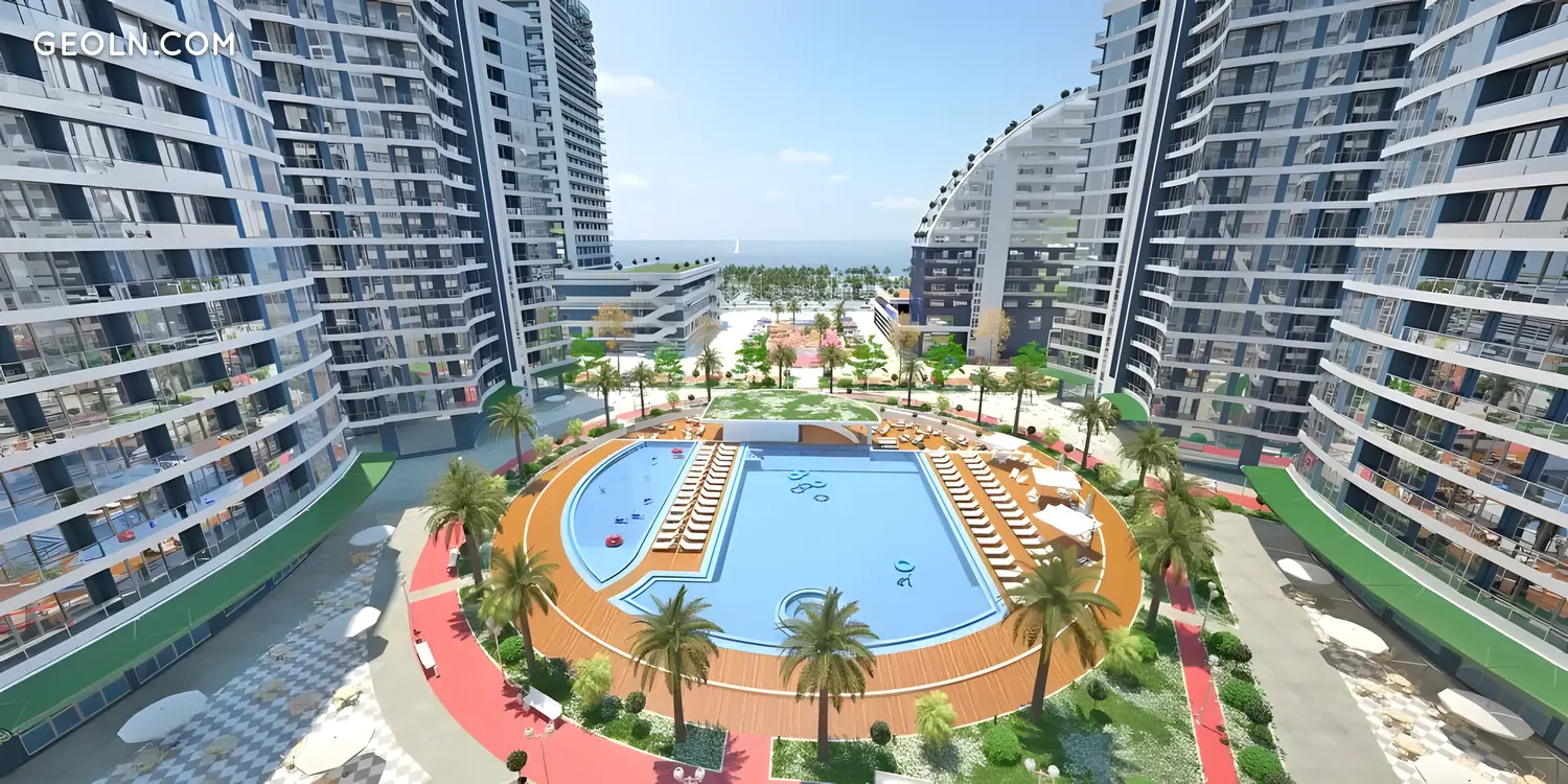 Studio wyposażone we wszystkie niezbędne udogodnienia i urządzenia elektryczne. Wszystko nowe, nieużywane do zamieszkania, z widokiem na morze, miasto i góry, w kompleksie z pełnym zakresem usług: restauracje, supermarket, boiska sportowe, park i spa.