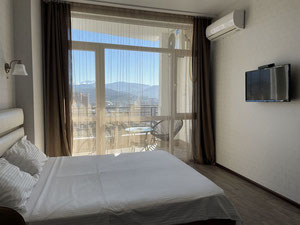 Mieszkanie o dużej powierzchni 99 m² na 5 piętrze. Wygodny układ z przestronną kuchnią połączoną z salonem z dwoma panoramicznymi oknami, dwie duże sypialnie, dwie łazienki, wygodny przedpokój i dwa balkony. Mieszkanie w stanie „czarnej ramy”. Posiada unikalny widok na morze i góry.