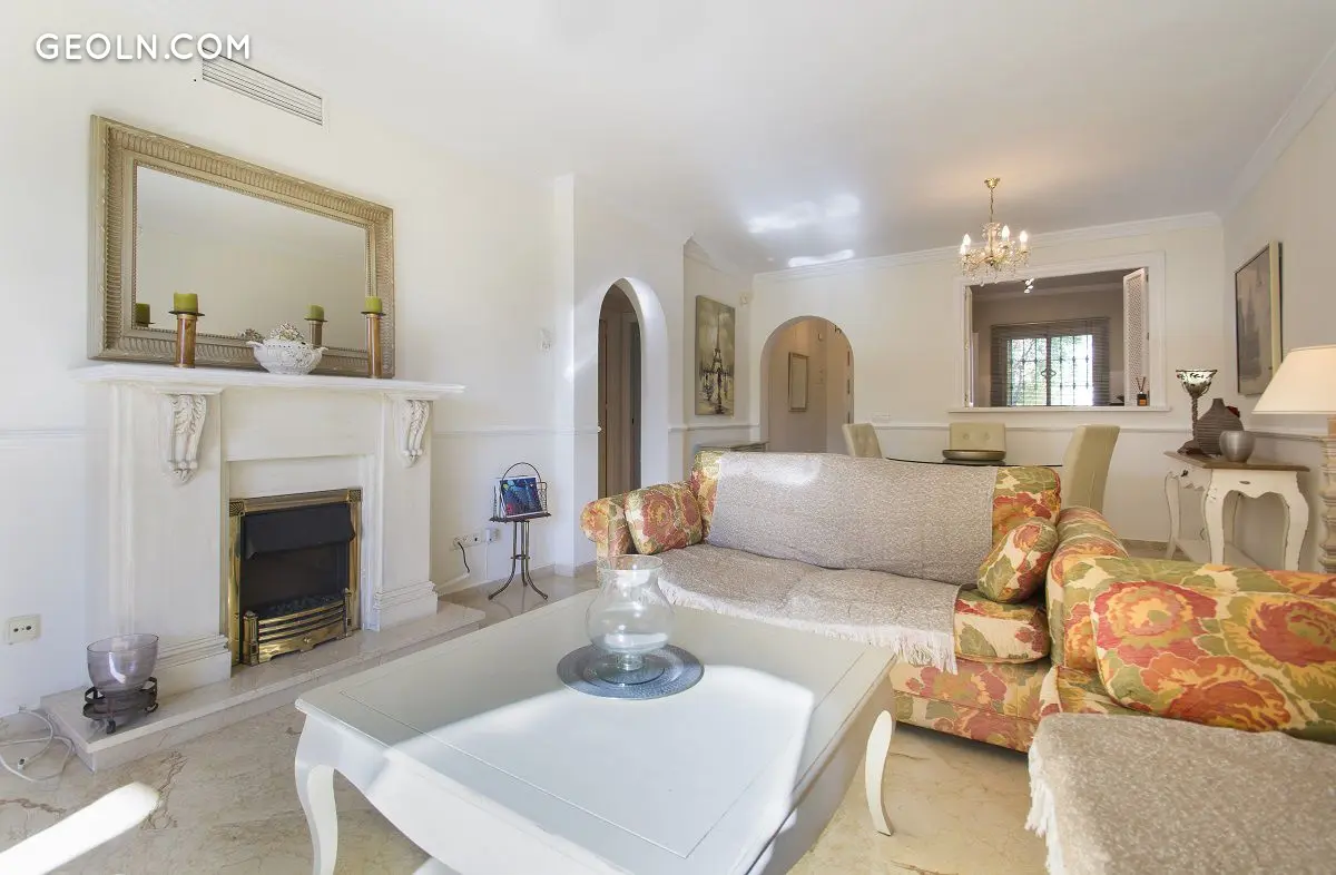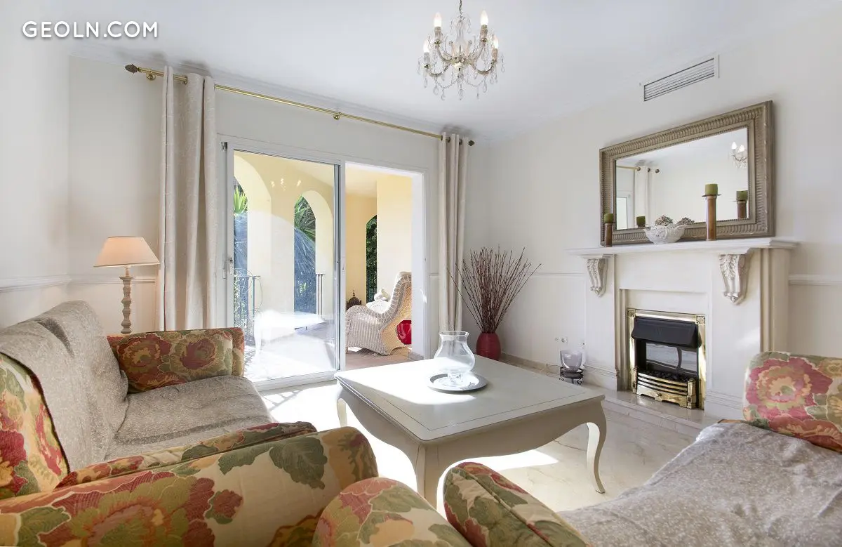 Jasny apartament z 2 sypialniami, 2 łazienkami z kremowymi marmurowymi posadzkami, ogrzewaniem podłogowym w łazienkach, prawdziwym kominkiem i klimatyzacją z ciepłą i zimną wodą.
