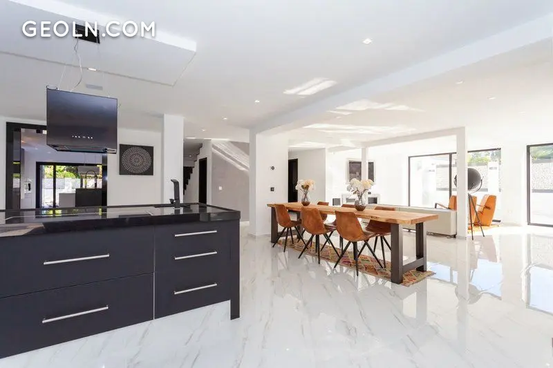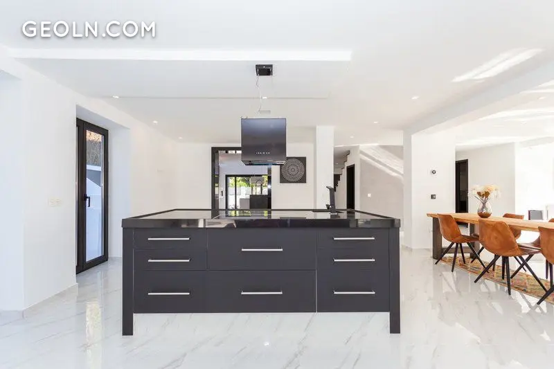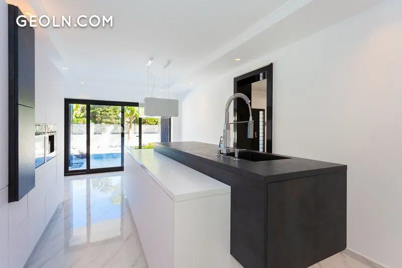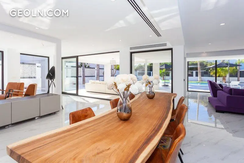 Nowoczesna, ale wygodna duża willa z pięknym salonem na otwartym planie, nowoczesną kuchnią. Piękny zadaszony taras z dostępem do basenu.