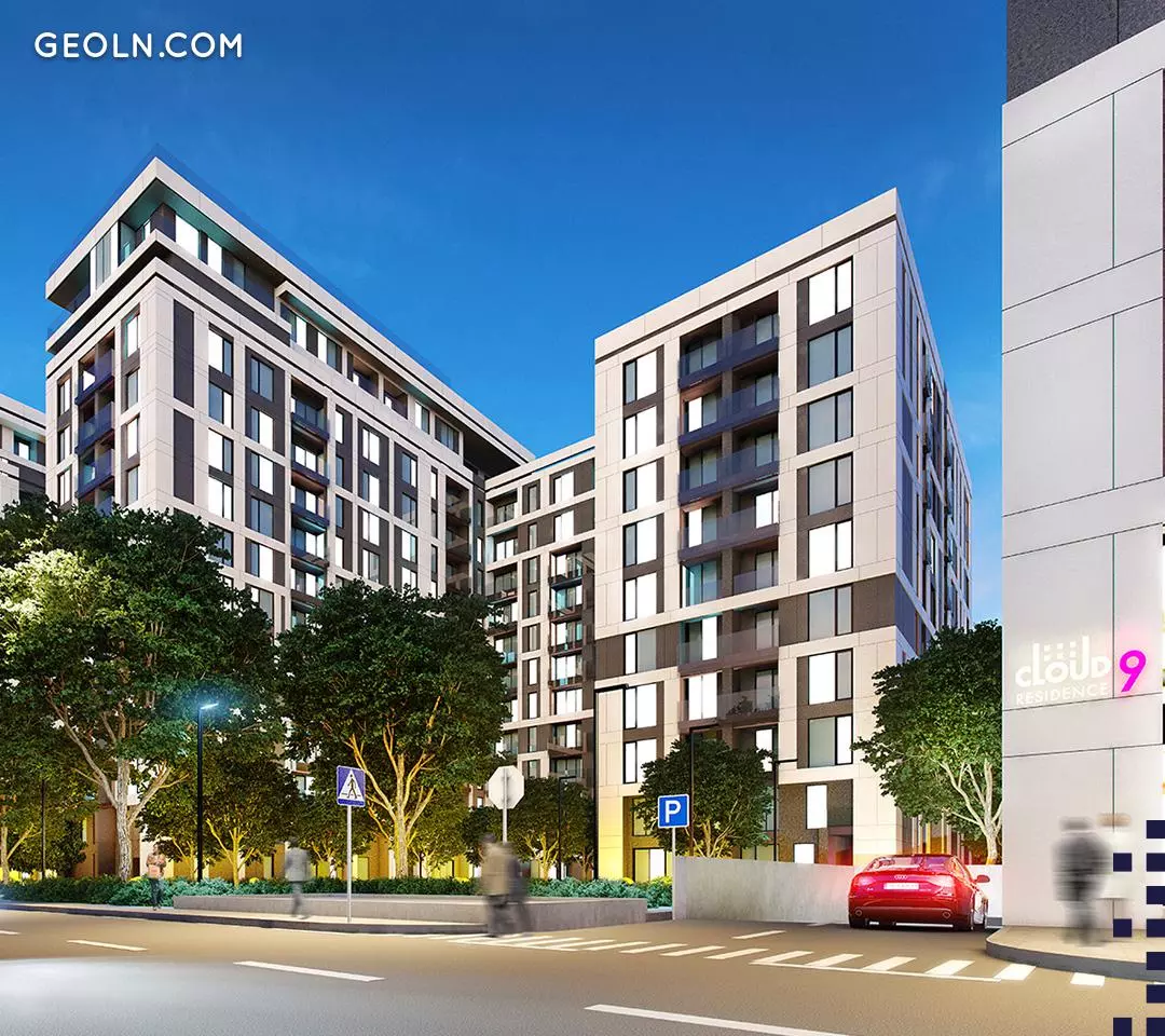 Projekt mieszkaniowy „Cloud9 Residence” oferuje na rynku nieruchomości w stolicy 820 nowoczesnych lokali mieszkalnych o przestronnych i rozsądnie podzielonych powierzchniach (64 kawalerki, 232 kawalerki, 376 mieszkań 2-pokojowych i 72 mieszkania 3-pokojowe, 18 dwupoziomowych). 2 pokoje i 50 dwupoziomowych z 3 pokojami). Powierzchnia najmniejszych domów zaczyna się od 47,37 m2, a dla największych mieszkań sięga 144,50 m2. Wszystkie domy zaprojektowano z dużymi przeszklonymi pomieszczeniami, z pełnym naturalnym oświetleniem i wykończeniem z materiałów najwyższej jakości. Mieszkania posiadają takie udogodnienia i udogodnienia: metalowe drzwi wejściowe, drzwi wewnętrzne, ściany są wykończone zmywalną farbą, kafelkami i płytkami. Są to elektryczność, akwedukt, systemy kanałowe, gaz i telewizja kablowa oraz światłowodowy internet.