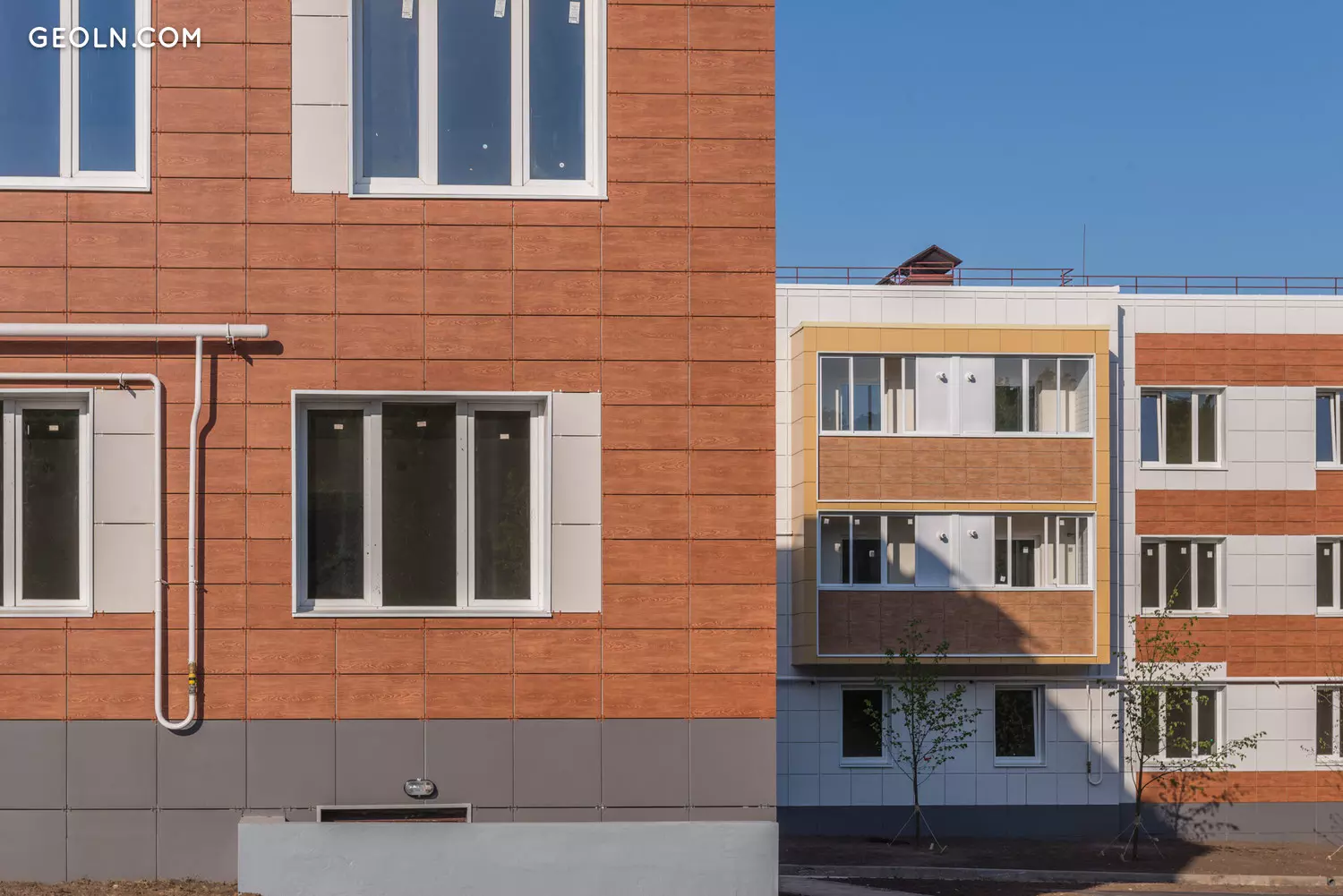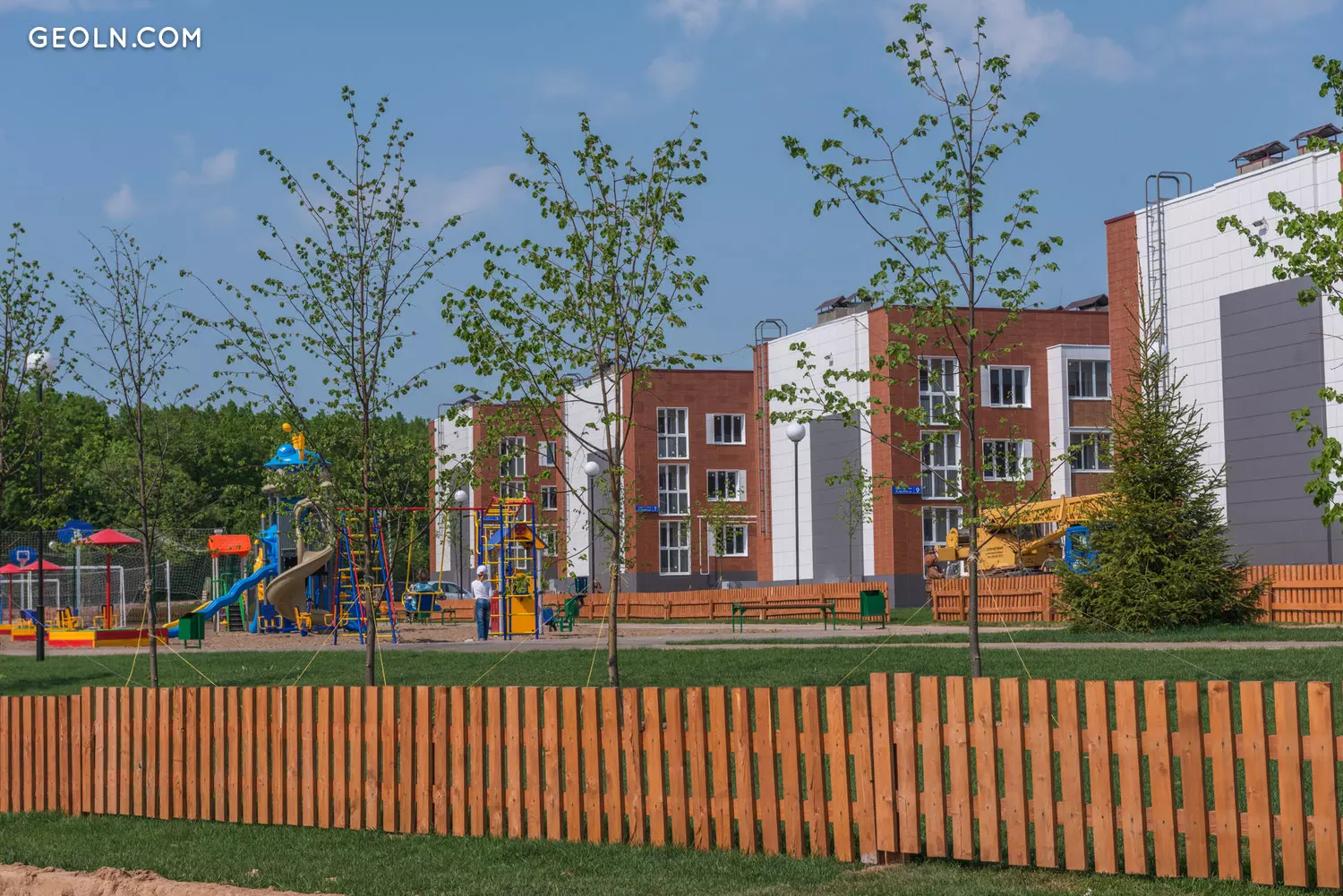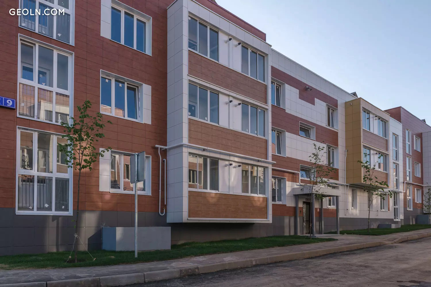 Trawniki są połamane, aw pobliżu budynków sadzone są drzewa. Terytorium nowego budynku jest podzielone na strefy funkcjonalne - budynki są rozmieszczone w blokach po kilka części w bloku. Między blokami wyposażane są parkingi dla samochodów osobowych i naziemnych, budowane są boiska sportowe, a także place zabaw dla dzieci o nieutwardzonej nawierzchni.