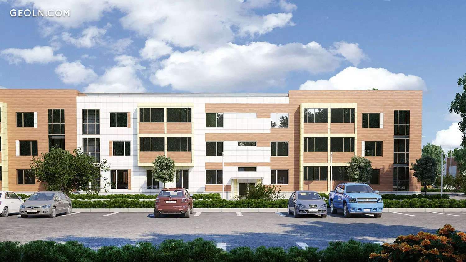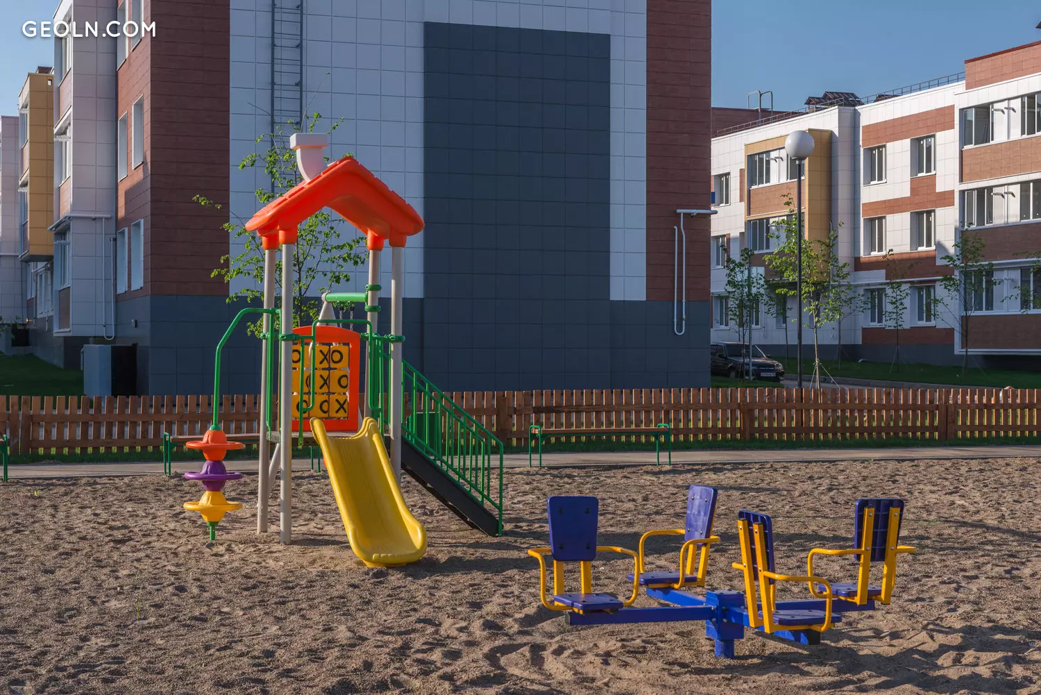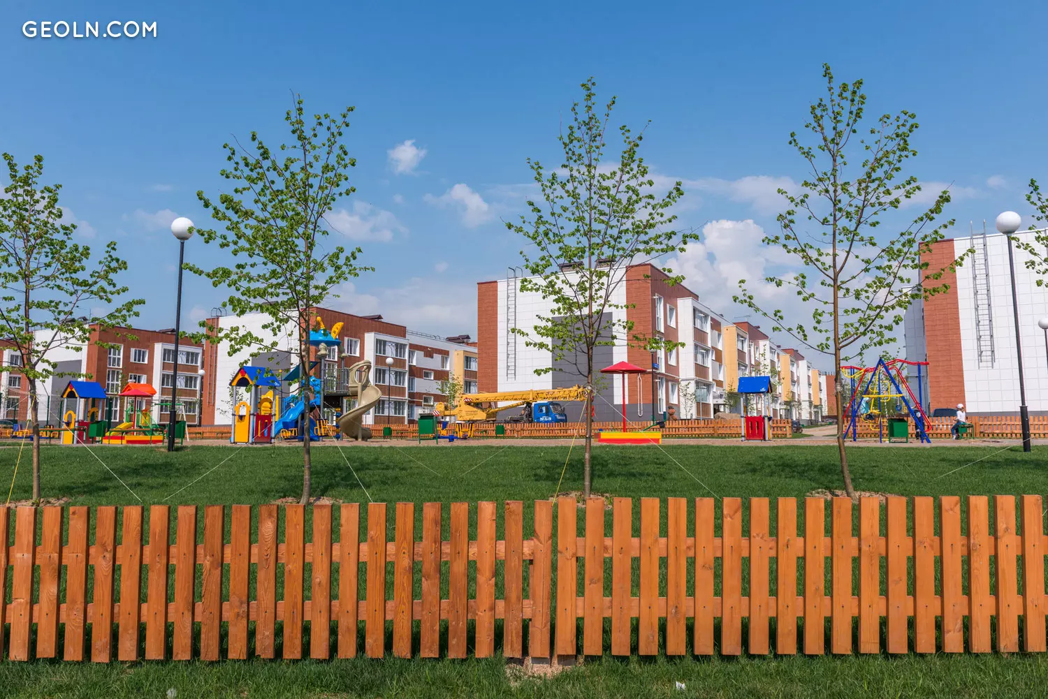 Trawniki są połamane, aw pobliżu budynków sadzone są drzewa. Terytorium nowego budynku jest podzielone na strefy funkcjonalne - budynki są rozmieszczone w blokach po kilka części w bloku. Między blokami wyposażane są parkingi dla samochodów osobowych i naziemnych, budowane są boiska sportowe, a także place zabaw dla dzieci o nieutwardzonej nawierzchni.