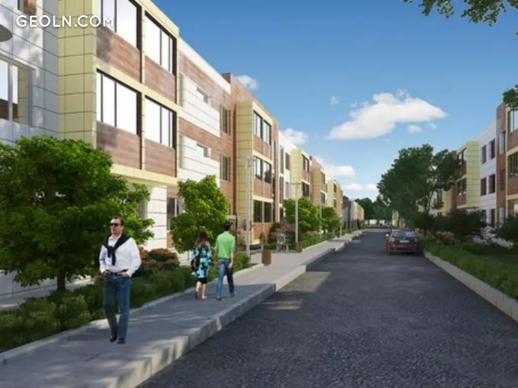 Nowy kompleks mieszkaniowy składa się z dziewięćdziesięciu dwóch trzykondygnacyjnych prostokątnych budynków, zbudowanych przy użyciu zaawansowanych technologii z materiałów odpowiadających kategoriom bezpieczeństwa środowiskowego.
