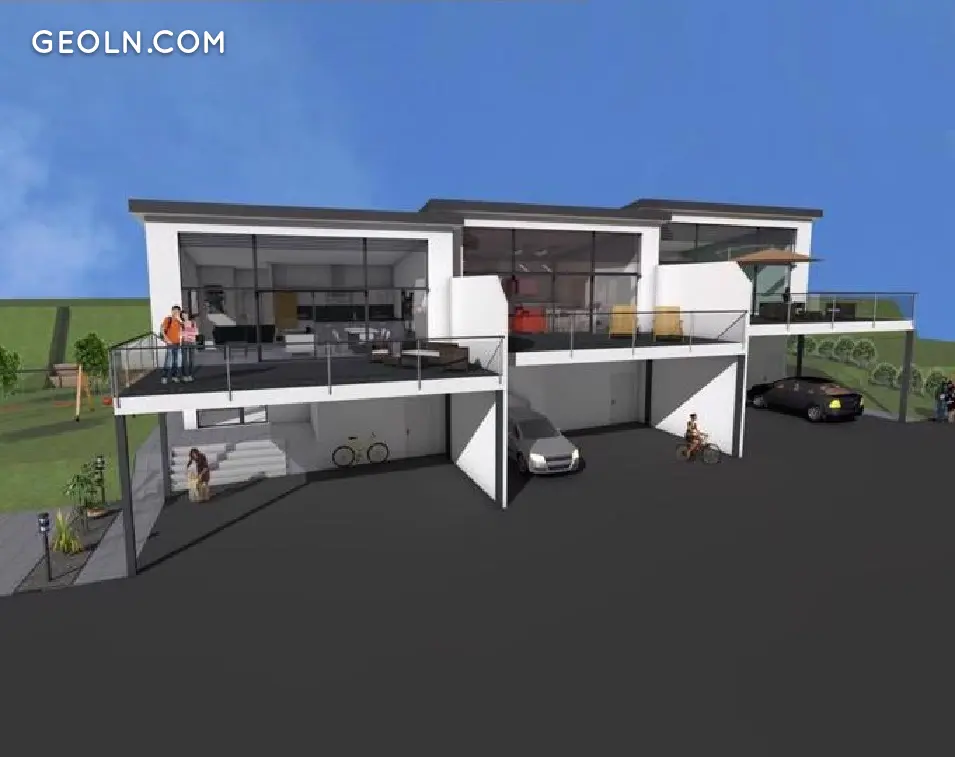 Trzy kamienice zbudowane w drewnianej ramie z panelami fotowoltaicznymi i wkrótce ujrzą światło dzienne pod Wybrzeżem, bardzo spokojna okolica w pobliżu wsi i przystanku pocztowego. Promotor postawił przede wszystkim na wkład światła, które wpłynie na powierzchnię oraz na optymalne nasłonecznienie. Podkreślał także uproszczoną organizację życia rodzinnego. Rzeczywiście, na pierwszym piętrze duży salon ze zintegrowaną kuchnią otwiera się na balkon o powierzchni 40 m², który przy dobrej pogodzie oferuje domowi dodatkowy pokój. Na tym samym piętrze znajduje się jeszcze główna sypialnia z łazienką i gabinetem. Parter poświęcony jest życiu dzieci z dwiema sypialniami i łazienką. Obok wejścia znajduje się pralnia i pomieszczenie techniczne. Zapierający dech w piersiach widok na wioskę i Mont Terri zdobi te trzy domy. Balkon służy jako zadaszenie samochodu. Bez wątpienia te domy zostały zaprojektowane tak, aby życie było przyjemne. Wydajność paneli fotowoltaicznych jest samowystarczalna dla potrzeb energetycznych przez ponad rok. Ten dom będzie oznaczony jako Minergie P z prostą wentylacją przepływową.