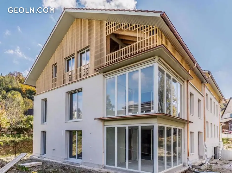 Nowy projekt budowlany „im Dörfli”, który znajduje się w samym sercu gminy Nusshof w Górnej Bazylei, bezpośrednio przy wiejskim placu, oferuje wysokiej jakości, centralne mieszkanie z wysoką jakością życia i bliskością natury. Mijając pięknie zagospodarowany teren zewnętrzny, przy wejściu znajduje się otwarta klatka schodowa i winda, dzięki której można łatwo dostać się do mieszkania, jak również do piwnicy i parkingu podziemnego.