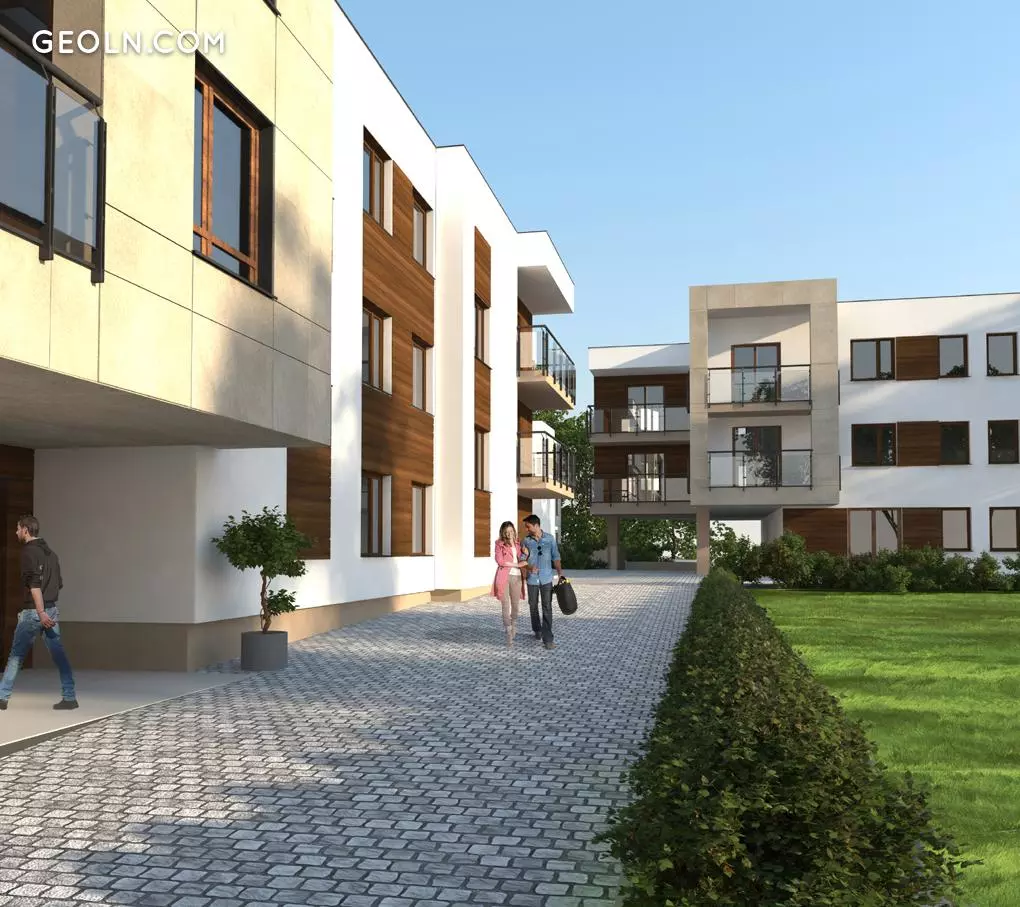 The investment consists of two three-story buildings. There are 60 apartments with an area from 33 to 76 m², as well as 59 parking spaces in the underground garage. Each buyer received a storage room for the price of the apartment.