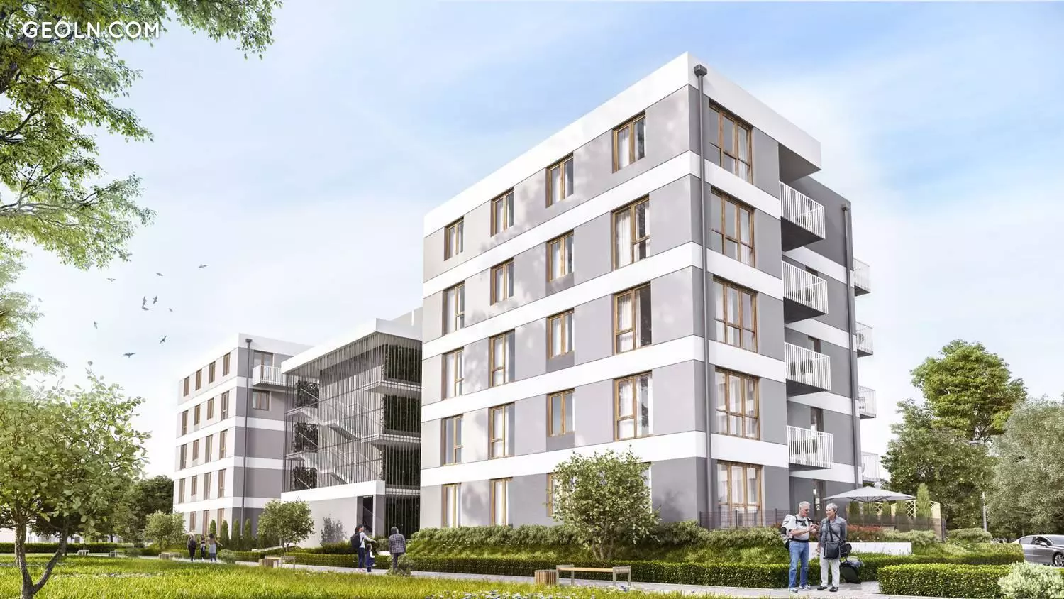 The buildings of the estate have 3-4 floors and are built in a minimalist, modern style. A combination of shades of gray and white was used in the elevations, decorative elements in the color of wood were added, large windows and metal or steel and glass balcony railings were made.
