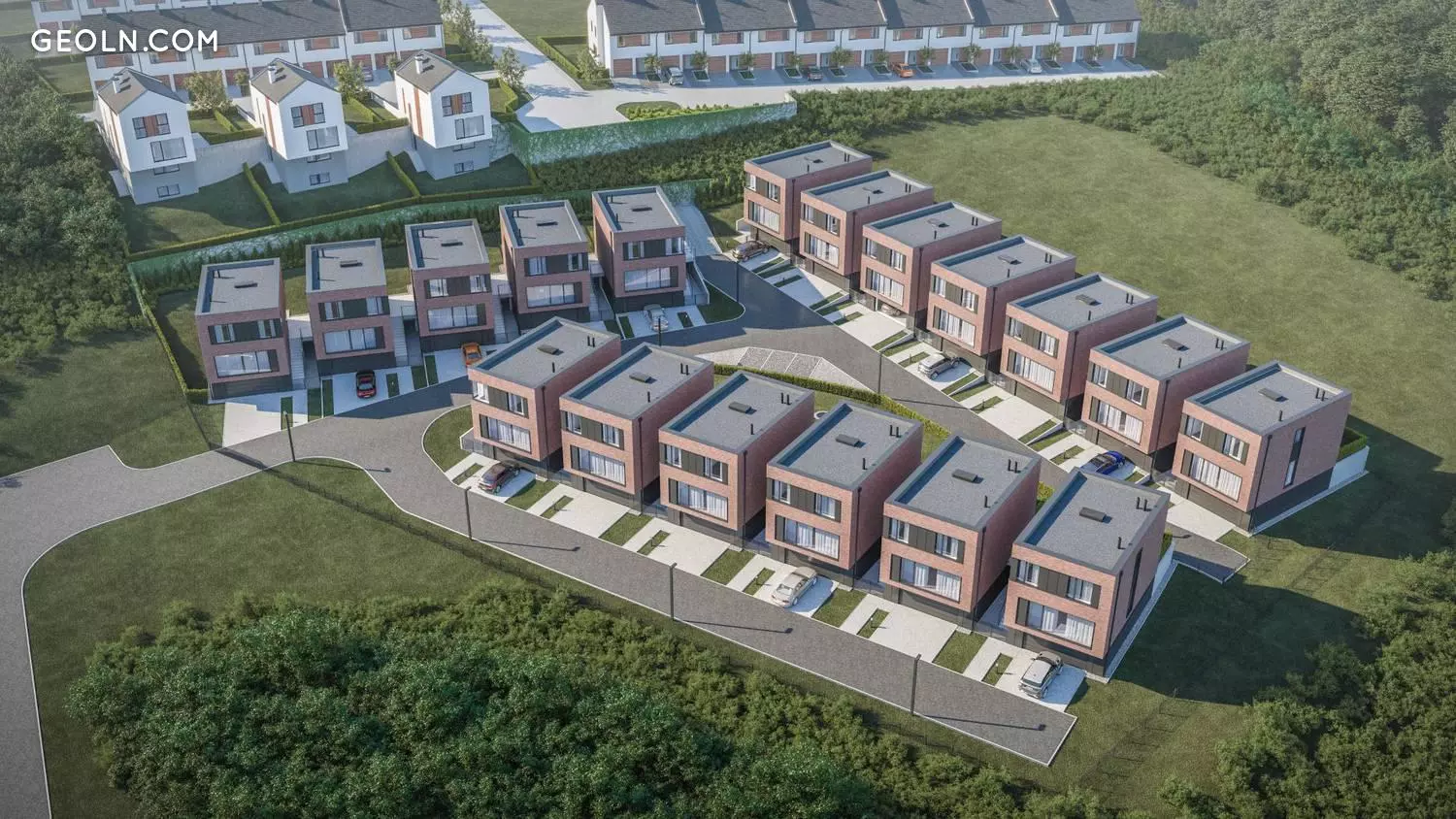 The investment includes 6 detached houses and 15 terraced houses. The area of detached houses is nearly 220 square meters, the area of apartments in terraced houses - 148 m2. All houses are four-room, equipped with individual heating systems, basements and garages, fenced plots of land ranging in size from 220 to 400 square meters.