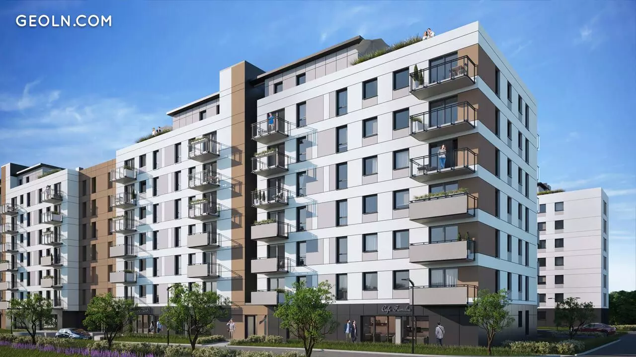 The investment includes apartments ranging in size from 35 to 100 square meters. The offer includes 2, 3 and 4-room apartments with balconies or roof gardens.